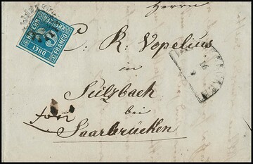 "183", gMR nebst HK "Lauterecken" auf Prachtbrief 3 Kr. blau