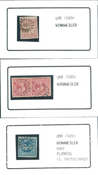"589" (Planegg o. Winnweiler), gMR auf vier Werten inkl. Bfst. mit zweimal 3 Kr.