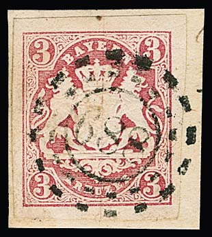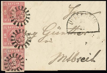 "533", gMR nebst HK "Uffenheim" vom 31.12.1859 auf Briefchen mit etwas ber. senkrechtem Dreierstreifen 1 Kr. rosa