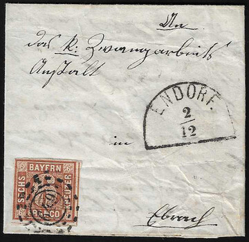 "649", oMR nebst HK "Endorf" auf Prachtbriefchen 6 Kr. braun
