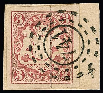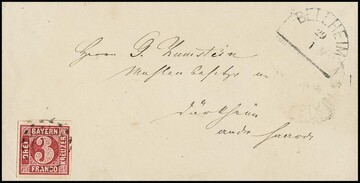 "688" (Walderbach), oMR klar auf Kabinettbriefstück Wappen 3 Kr. (rechts oben Plattenfehler)