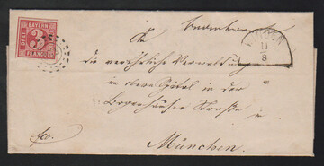 "549", oMR nebst HK "Wachenheim" auf Prachtbrief 9 Kr. braun