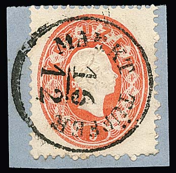 "Hütteldorf", guter Fahnenstempel (Müller 1063a, 120 P.) zentrisch klar auf Couvert 15 Kr. blau, rs. Siegel entfernt, Attest Puschmann