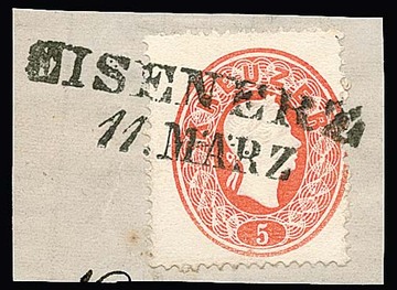 "Eisenerz", Steiermark-L2 voll auf Kabinettbriefstück 5 Kr.