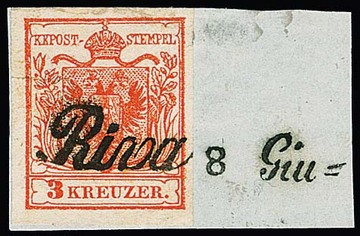 "Riva", guter Tiroler Schreibschrift-L1 voll auf Kabinettbriefstück 3 Kr. rosa (natürliche Aufkleberunzel kein Mangel), Müller 2371