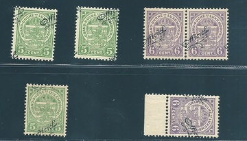 5 C. grün, 6 C. lila, je drei meist postfrische Werte mit deutlich verschobenen Aufdrucken