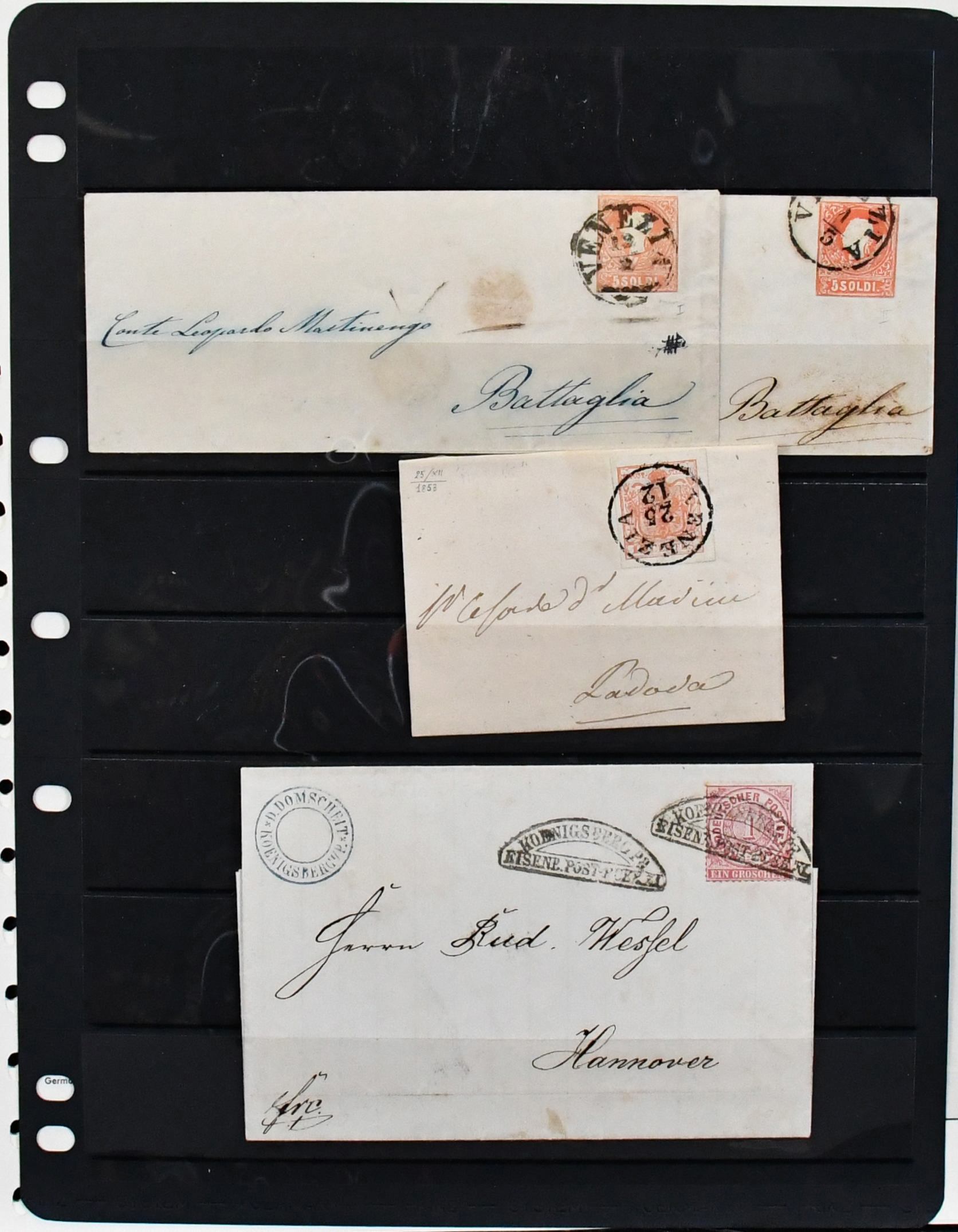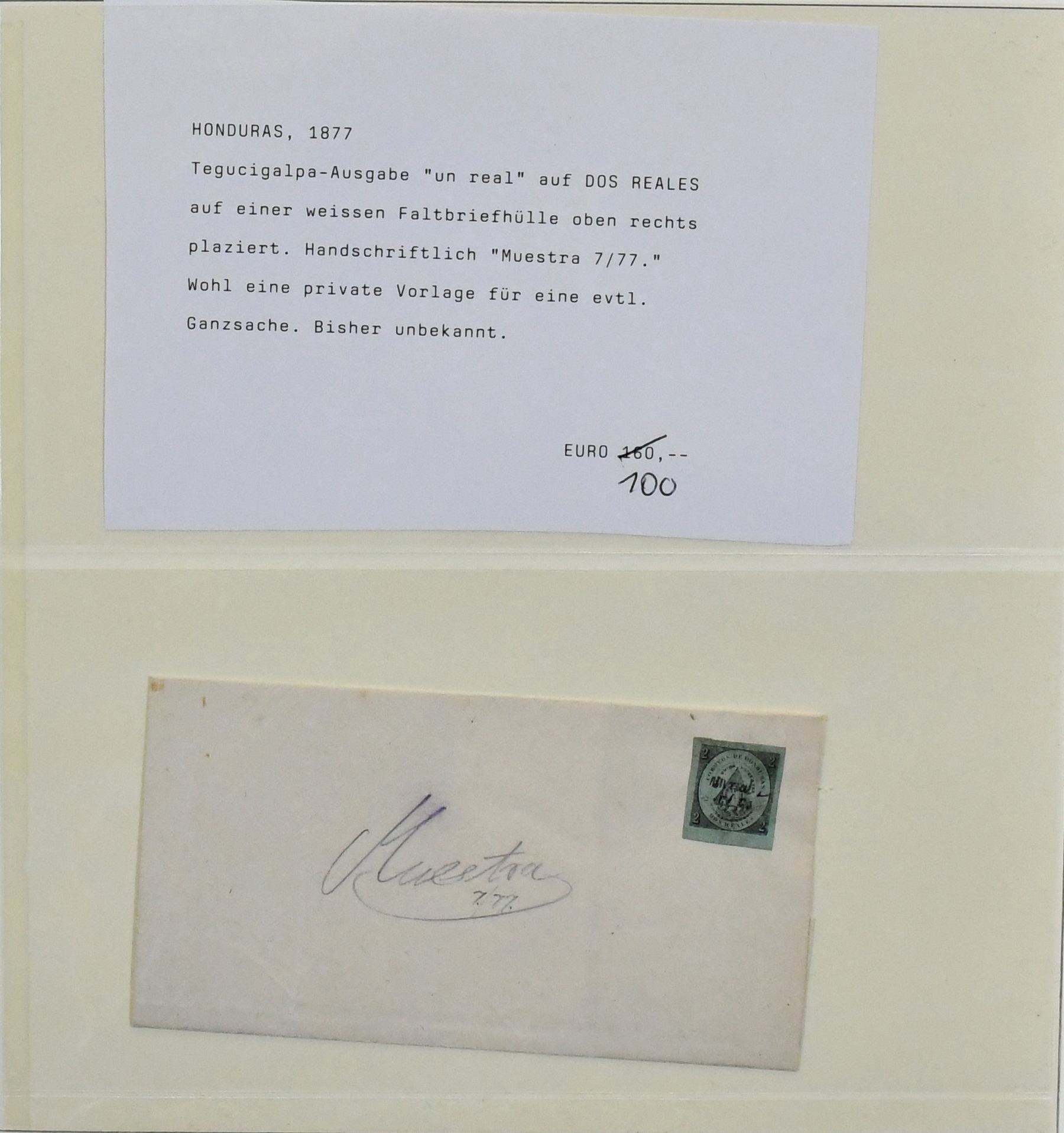 Alle Welt, Briefpartie mit Besonderheiten, dabei Österreich Nr. 37 unentwertet auf Brief aus Bihacz/Türkei, Honduras Nr. 8 auf "Muster"-Bogen, Deutsches Reich Nr. 2b unentwertet auf etwas stockiger Streifband-Ganzsache 1/3 Gr. etc.