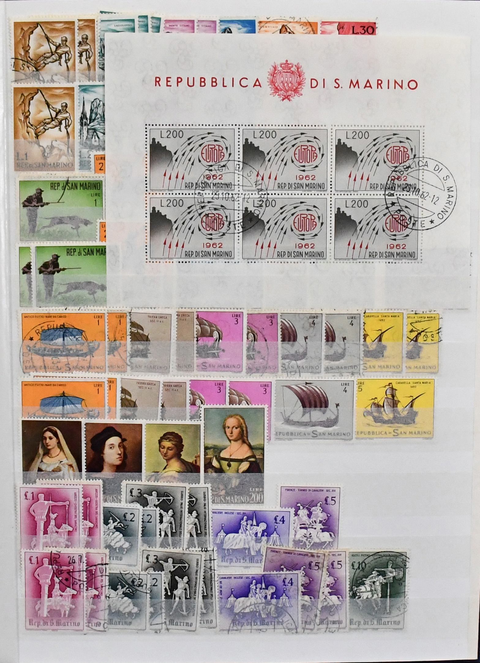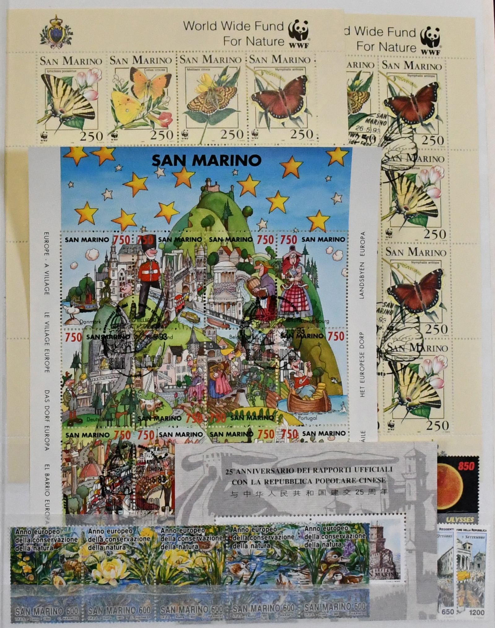 Alle Welt, Sammlungsbestand mit meist postfrischen Sammlungsteilen in sieben Alben, dabei Frankreich 1960-77 weitgehend kpl., Vatikan aus 1963-79, teils Viererblöcke, UNO, Europa allgemein mit ca. 500 Blöcken bis 1986, Teile Ruanda, sowie etliche FDCs