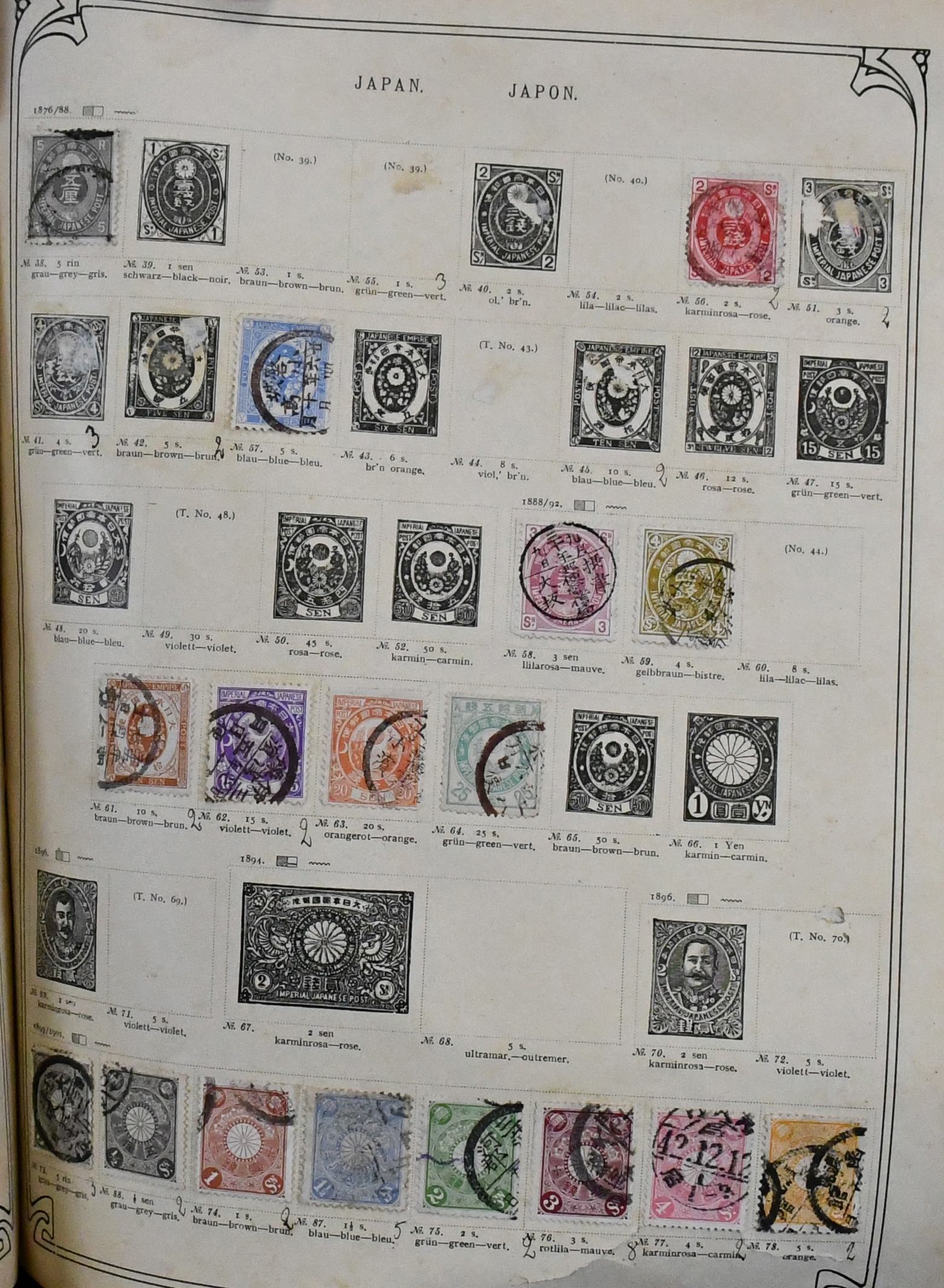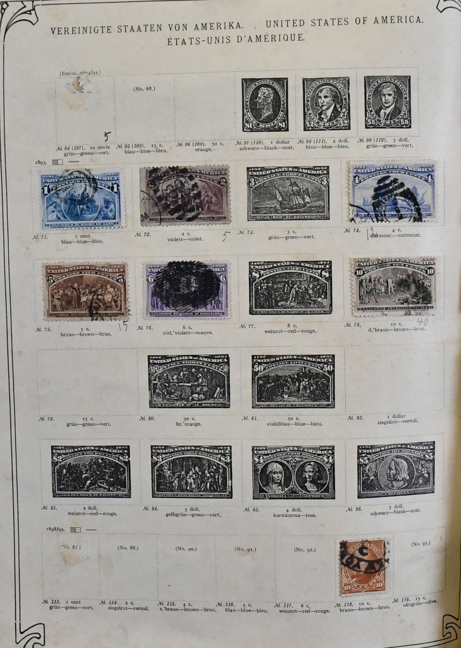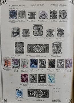 Alle Welt, uriges altes Schwaneberger Vordruckalbum, Ausgabe etwa 1898, mit üblich untersch. Sammlungsteilen ab Klassik, dabei etwas Altdeutschland mit Sachsen, Taxis, Frankreich mit Kolonien, dito Alt-England mit Kolonien, Italien u. Spanien, Süd- und Nordamerika etc., viele hundert Marken