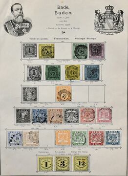 Baden, überwiegend gest. Slg. in meist guter Erhaltung auf alten Albumblättern, dabei u.a. Nr. 2a, 3a, 4, 5-7, 8, 11, 14-15, 16, 17-19, 20ba, 22 (ungest.), 23-25 usw.