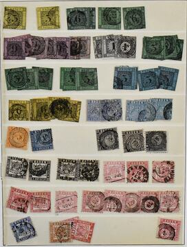 Baden, Mi.-Nr. 1-8, 31 geschnittene Werte ab einmal Nr. 1b, in überwiegend guter Erhaltung, dabei Paar Nr. 2a, 3a auf Bfst., 3b zweimal vom Rand und einmal mit rotem NS "115", 4a usw.