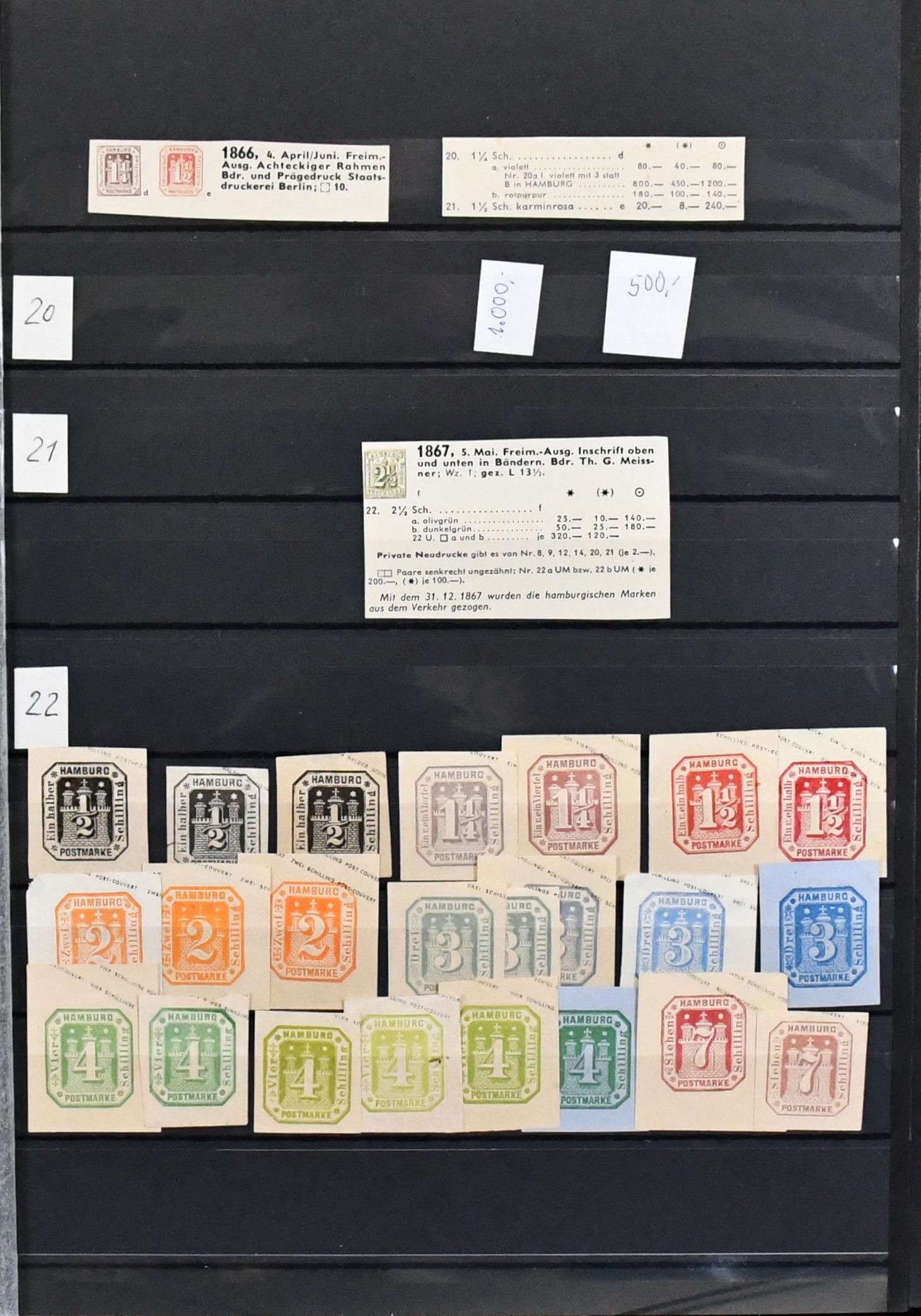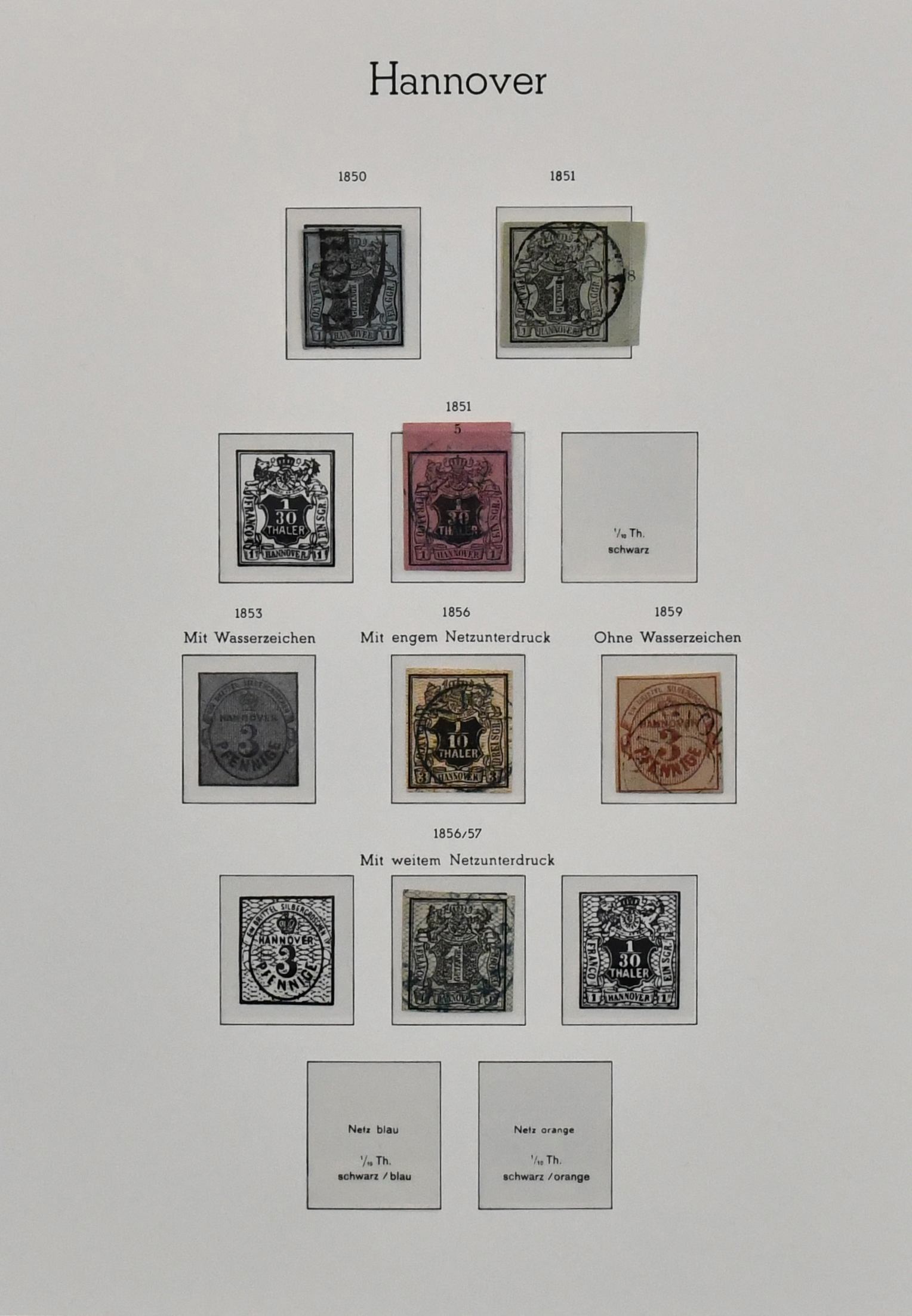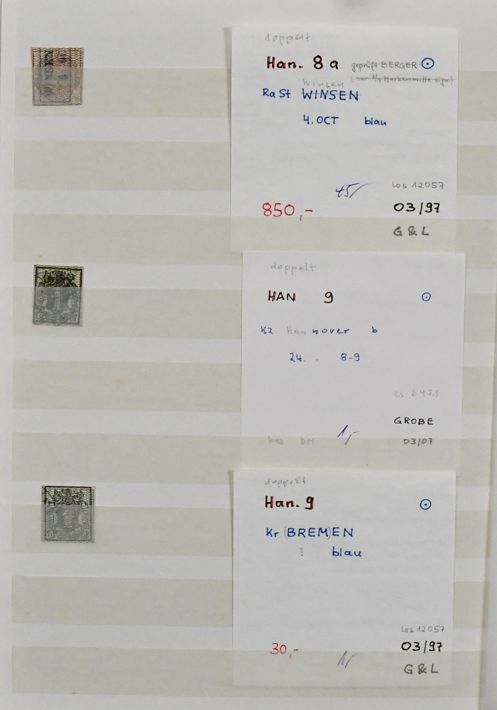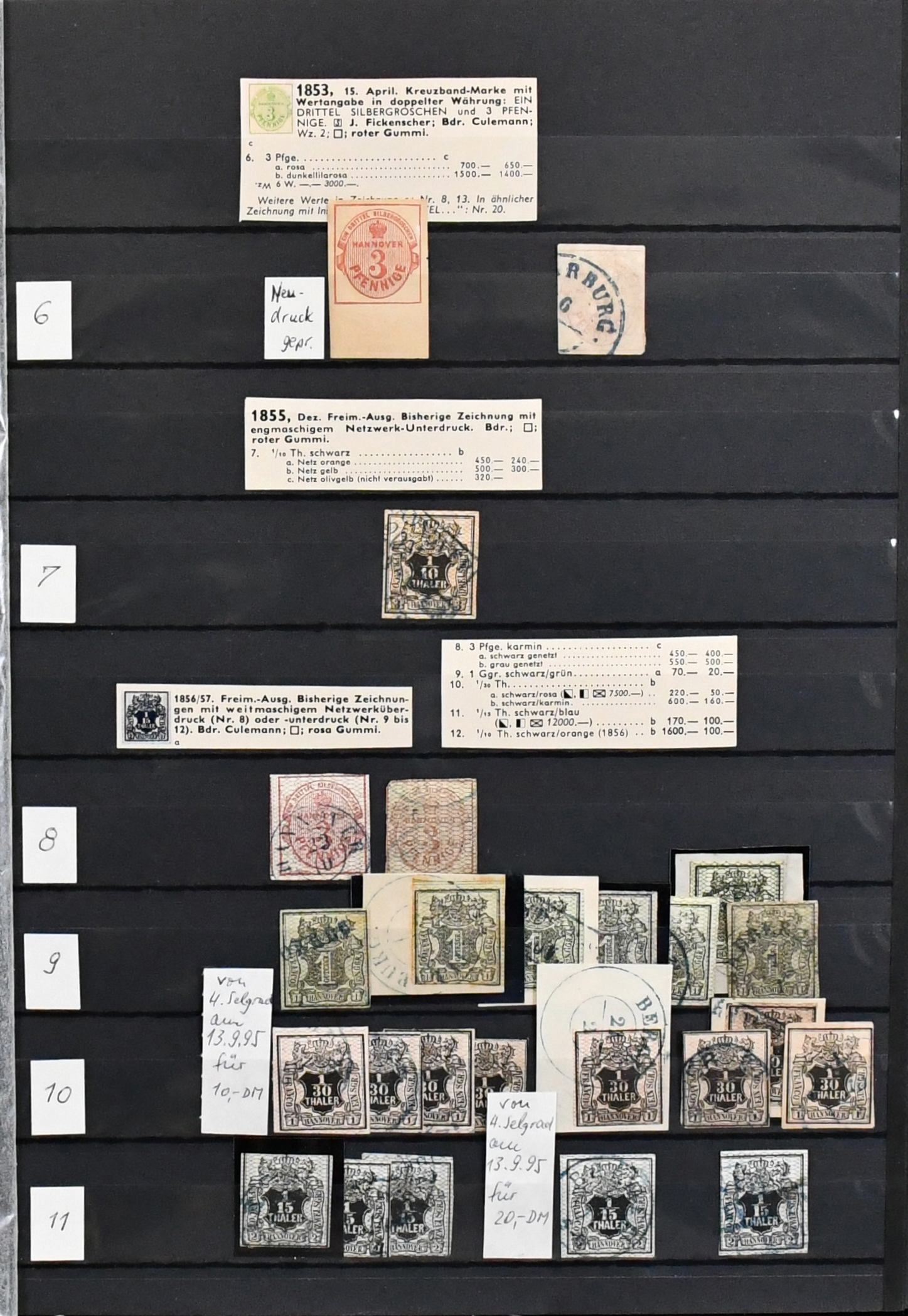 Hannover, weit überkomplette Slg. in üblich untersch. Erhaltung auf Vordrucken, mit Besonderheiten wie Paar Nr. 2b, immer fehlender Nr. 6, zweimal Nr. 18 (gest. und ungebr.), 20, ferner Nr. 17x einmal vom Rand gest. usw. Mi. 6800,- +