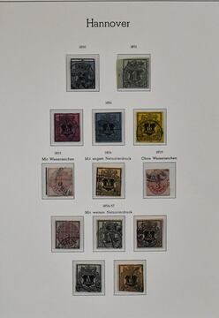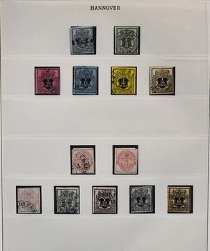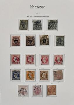Hannover, hochwertige Sammlung in meist guter Erhaltung auf Albumseiten, dabei u.a. Nr. 1 mit blauem Stempel von Hildesheim (tiefst sign. Berger), 3a(2), 3b(3), 4(2), 5(3), 7 auf Kabinettbriefstück, 8a(2), 11 per zwei (einmal überrandig, einmal rechtes Bordürenrandstück), 13 auf Briefstück (sign. Köhler), 17 per drei (einmal Randriese, tiefst sign. Pfenninger), 18, 19 aus der linken unteren Bogenecke auf Briefstück, 22y usw. Ein in dieser schönen Qualität schwer zu findendes Objekt mit hohem KW