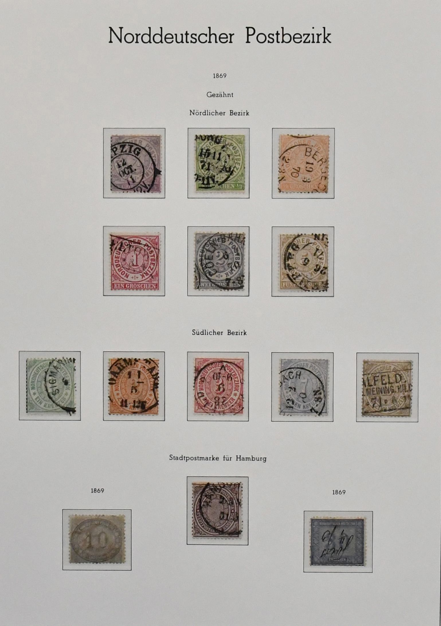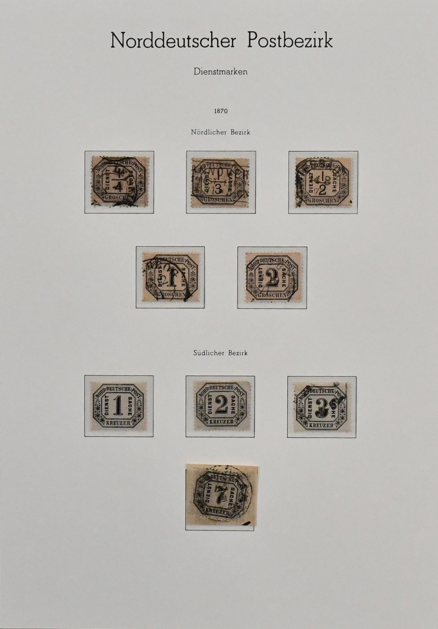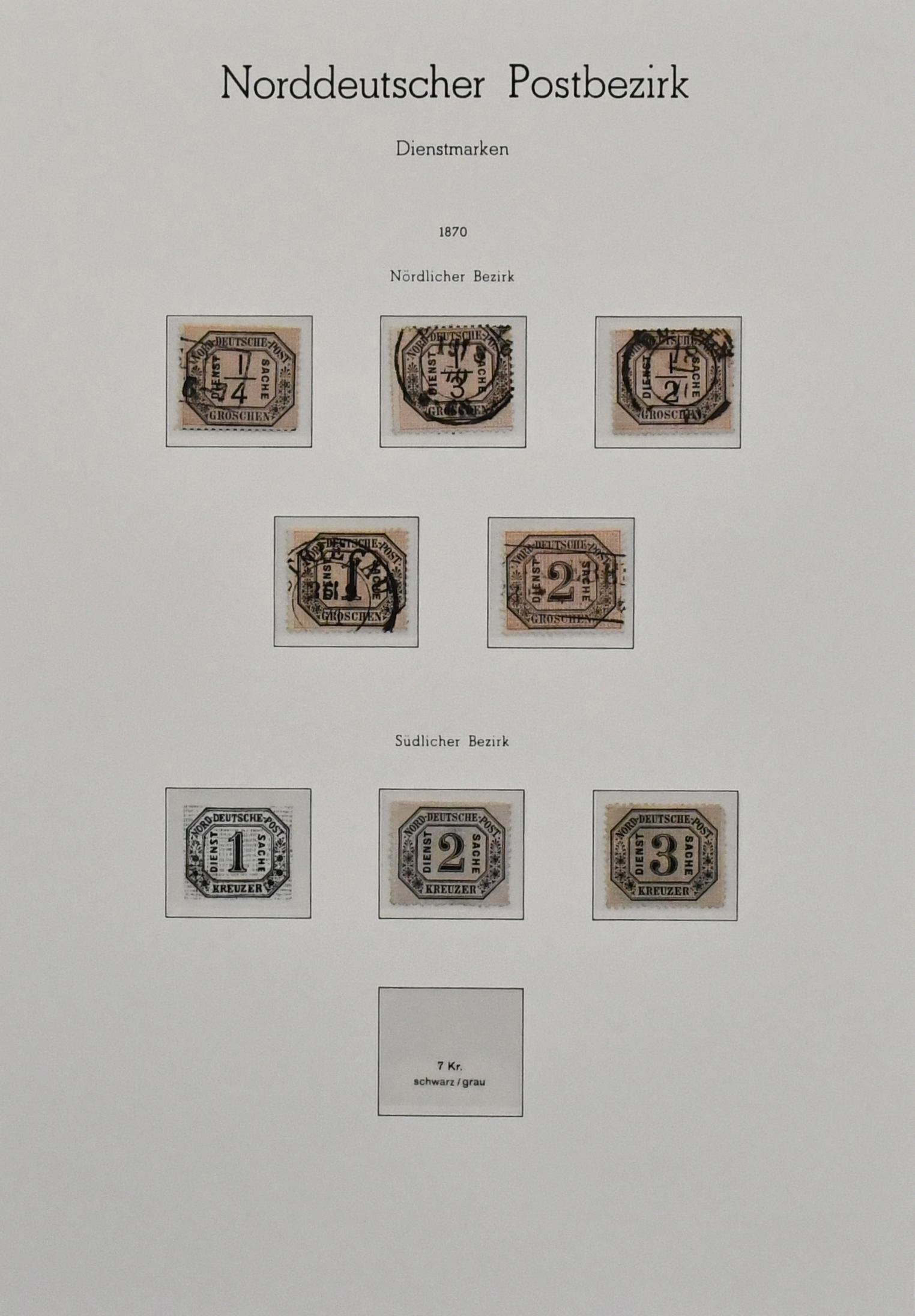 Norddeutscher Postbezirk sowie Elsaß-Lothringen, jeweils komplette Sammlungen auf KABE-Vordrucken (inkl. Dienst mit Kreuzer), dabei die seltene Nr. 23 (18 Kr.) sehr schön zentrisch gestempelt "Romrod"