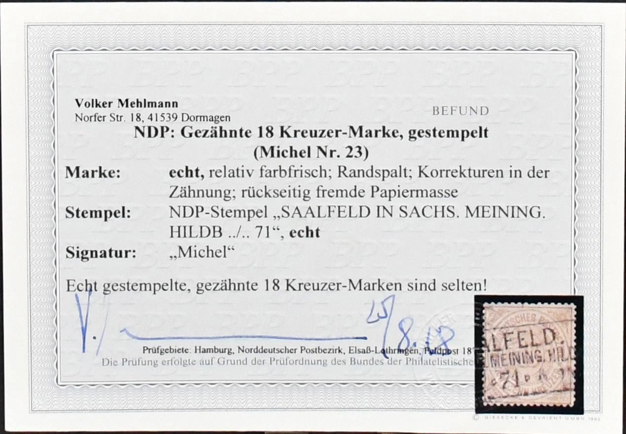 NDP, komplette, meist gestempelte Slg. auf Albumseiten, dabei Nr. 1-6, 8, 11, 12, 19-22, 23 mit Fotoexp. Mehlmann (Mi. 2200,-), 25 u. 26 mit hs. Entwertung etc., ferner auch Dienst kpl., sowie Elsaß-Lothringen mit Nr. 1-7I