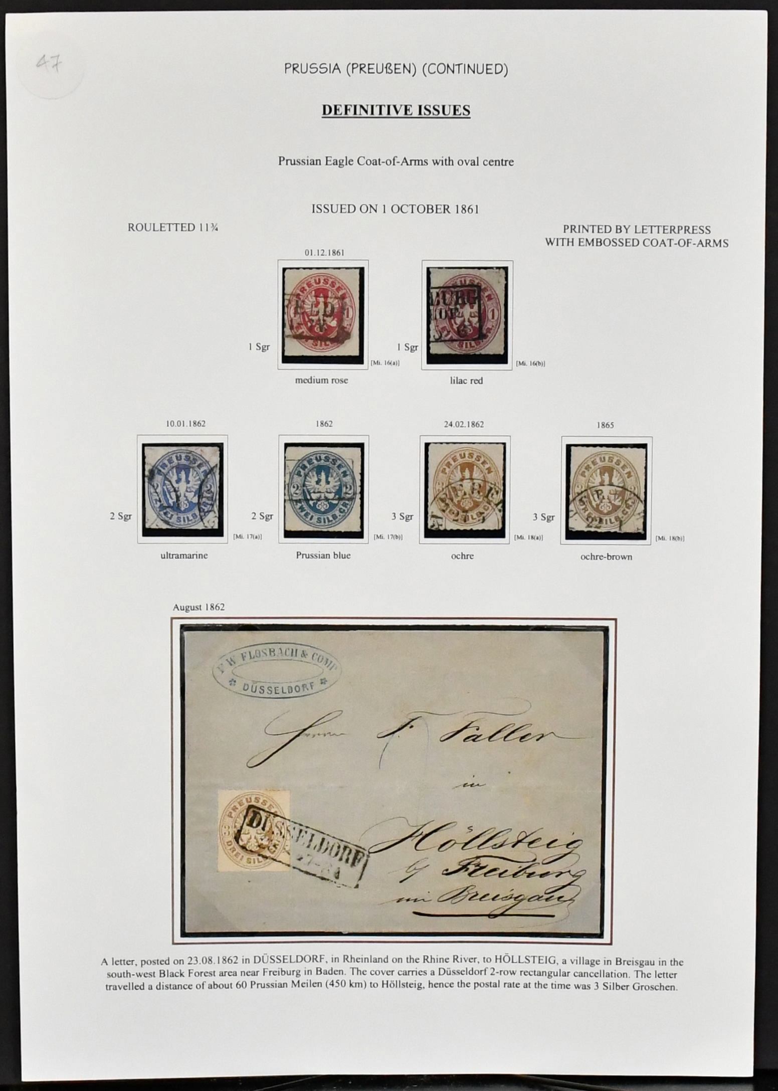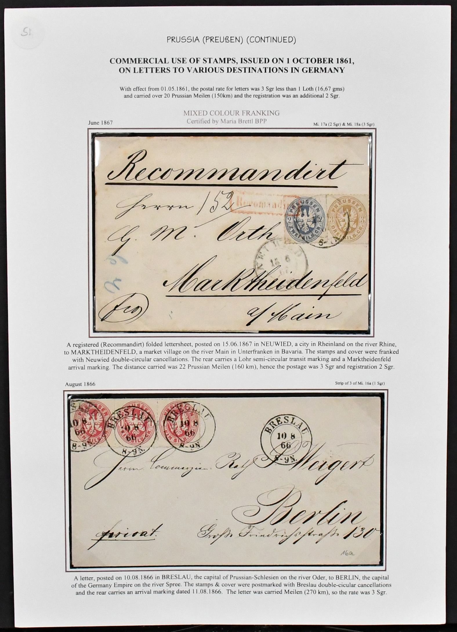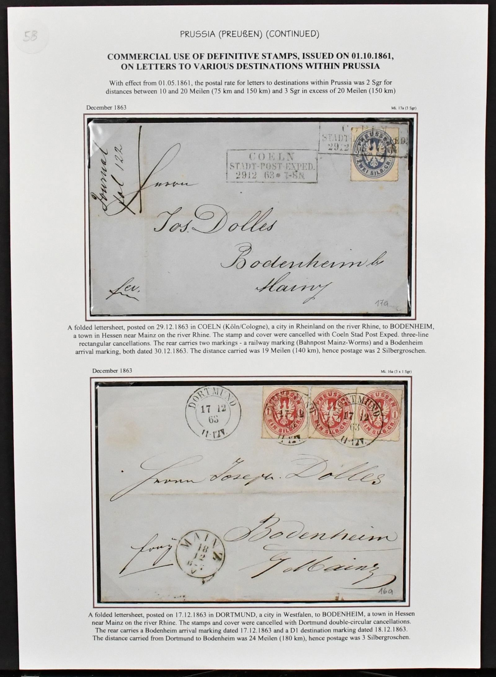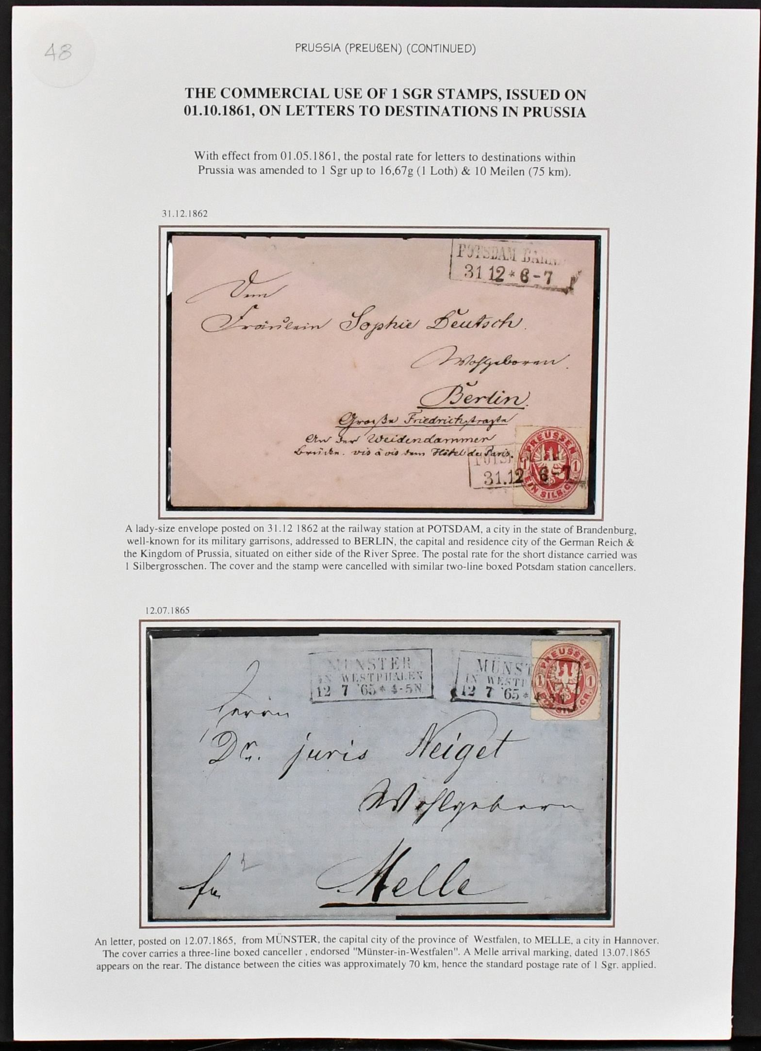 Preußen, Wappen-Ausgabe (vorweg zwei lose Nr. 13), Teil einer englischen Ausstellungs-Sammlung mit alleine 27 Belegen (inkl. Ausland und Express)