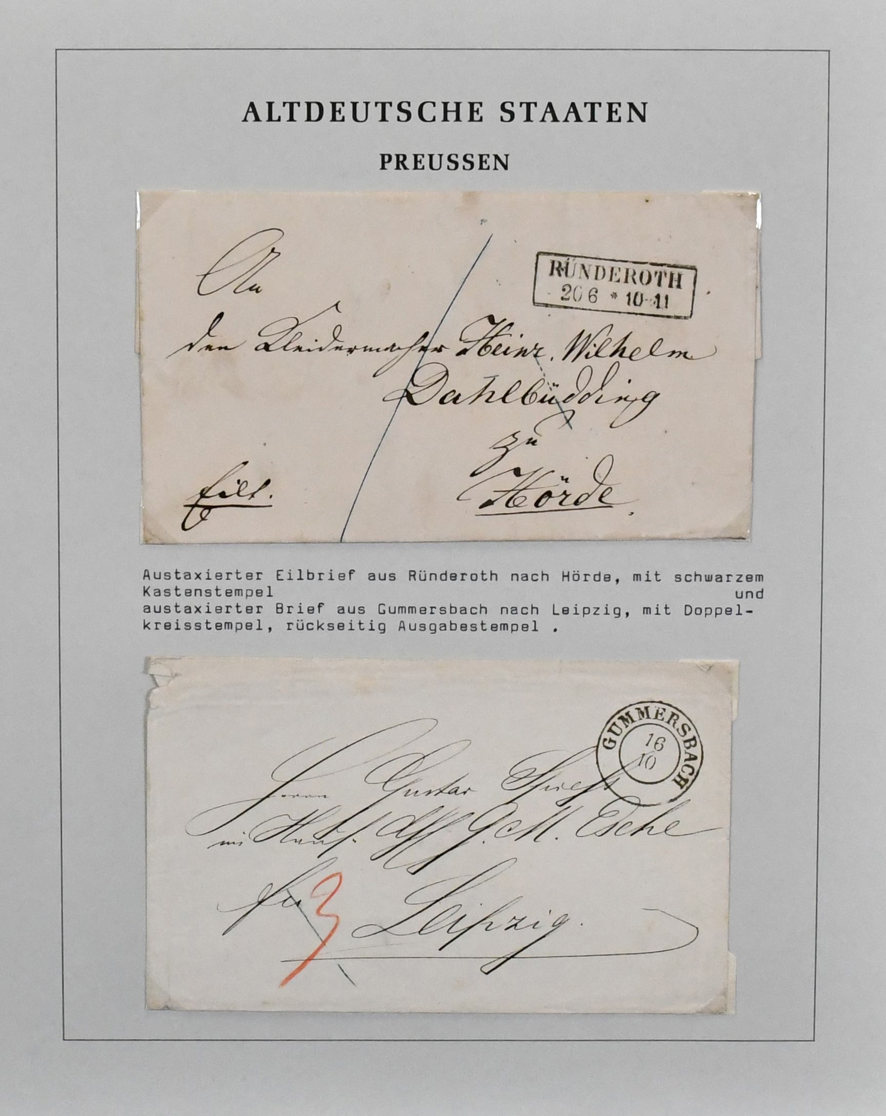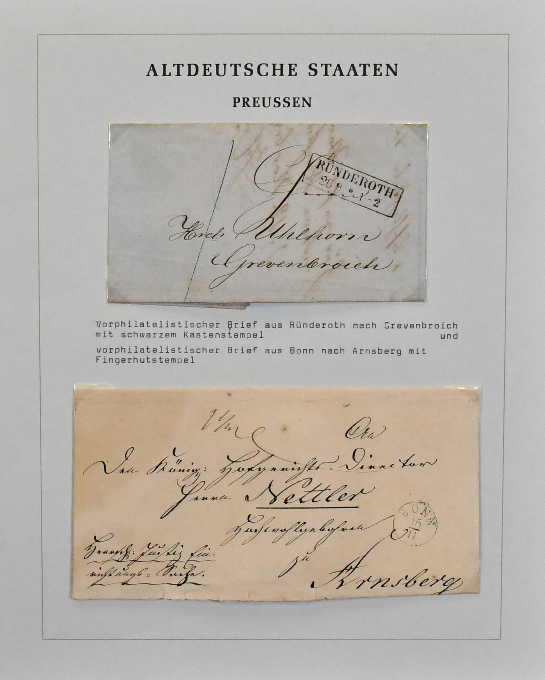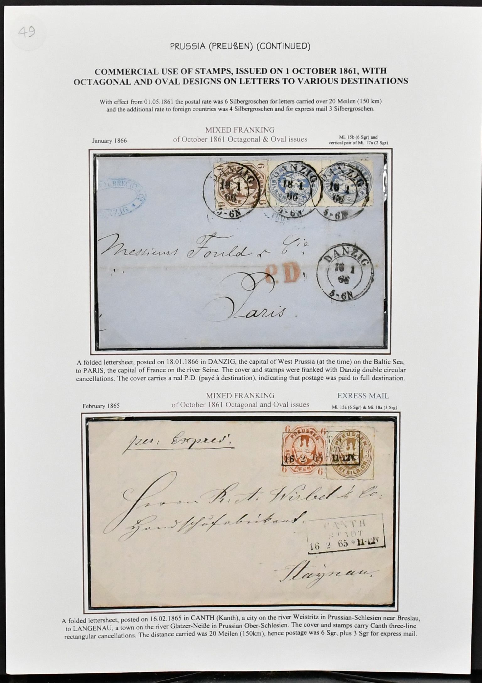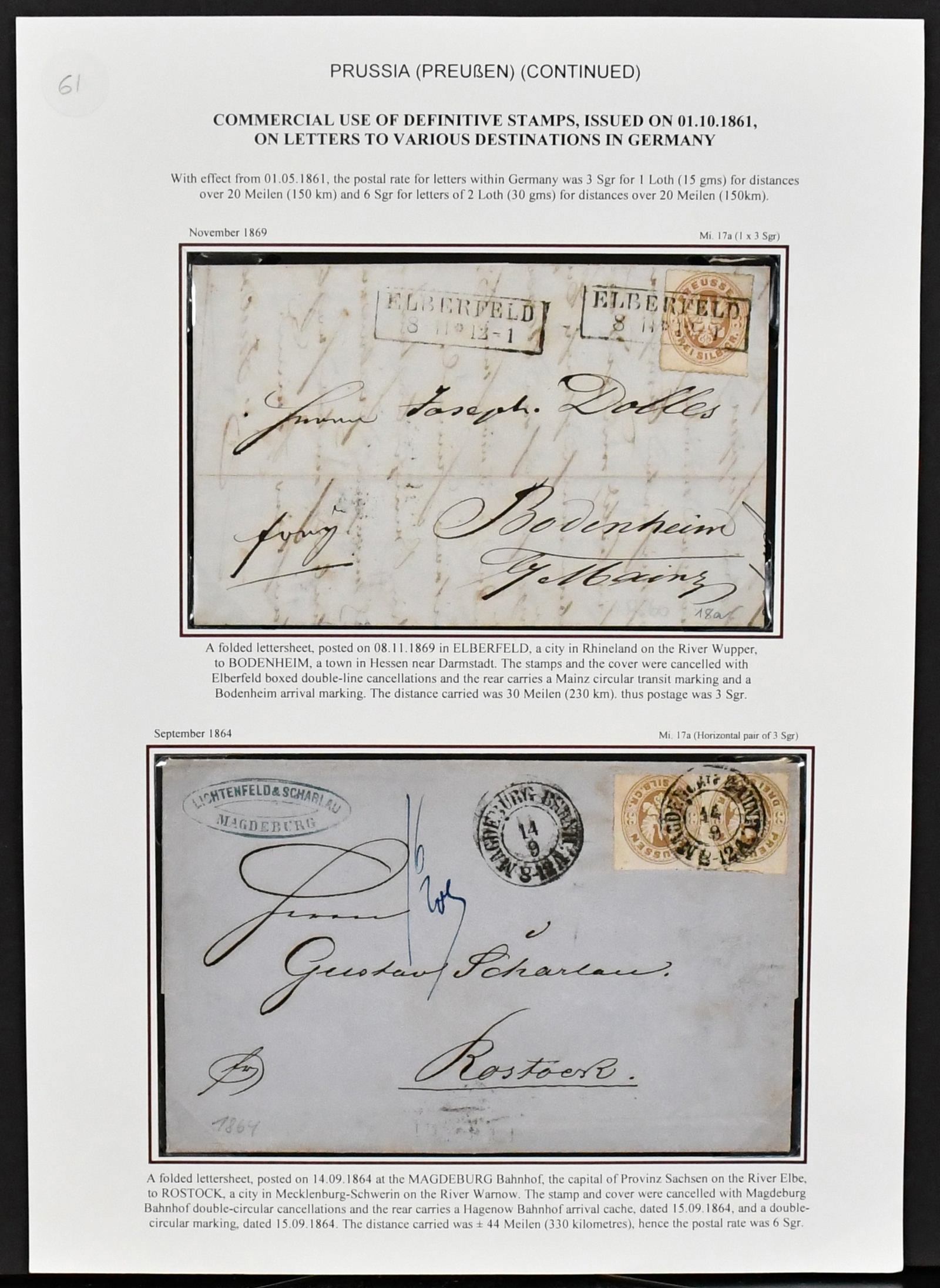 Preußen, Wappen-Ausgabe (vorweg zwei lose Nr. 13), Teil einer englischen Ausstellungs-Sammlung mit alleine 27 Belegen (inkl. Ausland und Express)