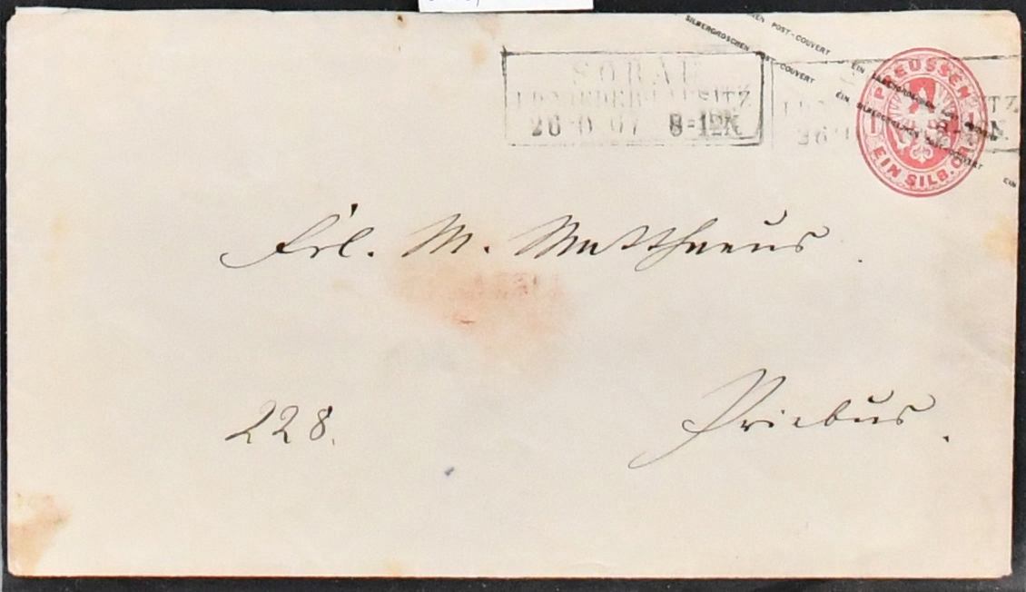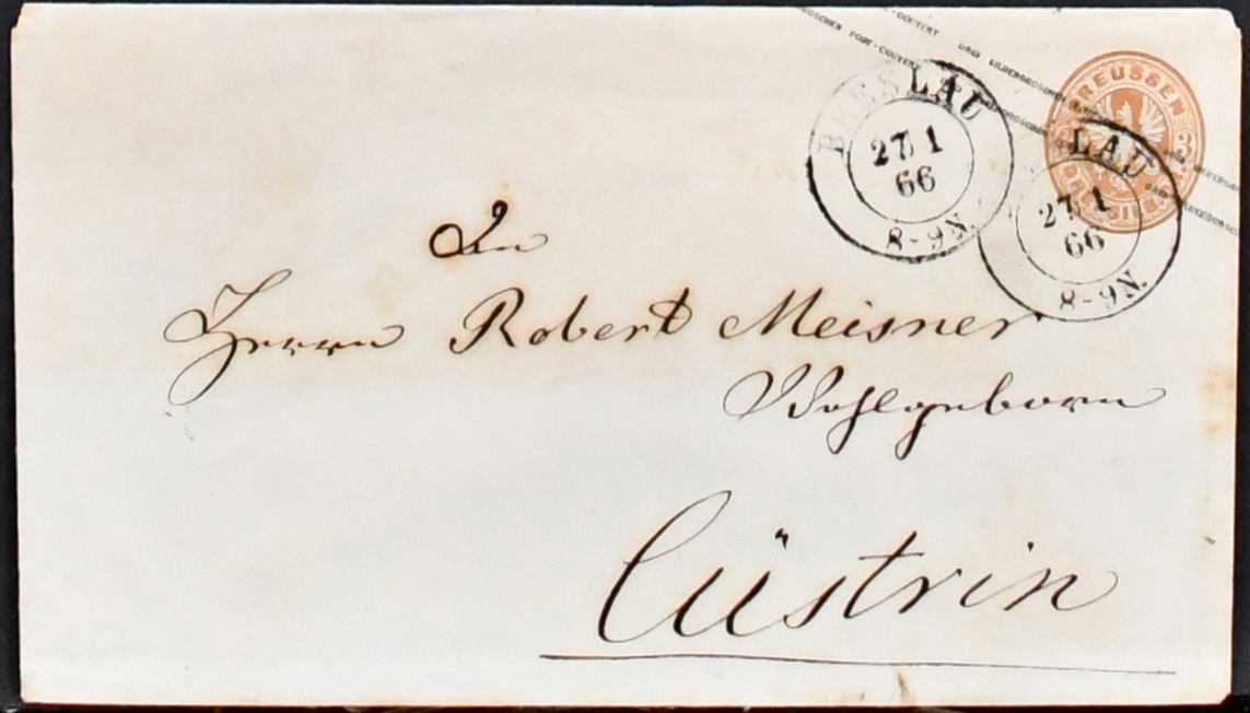 Preußen, Partie von 44 Belegen, dabei viele Ganzsachen, aber auch frankierte Briefe (teils mit Kopf-Ausgaben), u.a. seltener nachverw. blauer Hannover-K2 "Elze"
