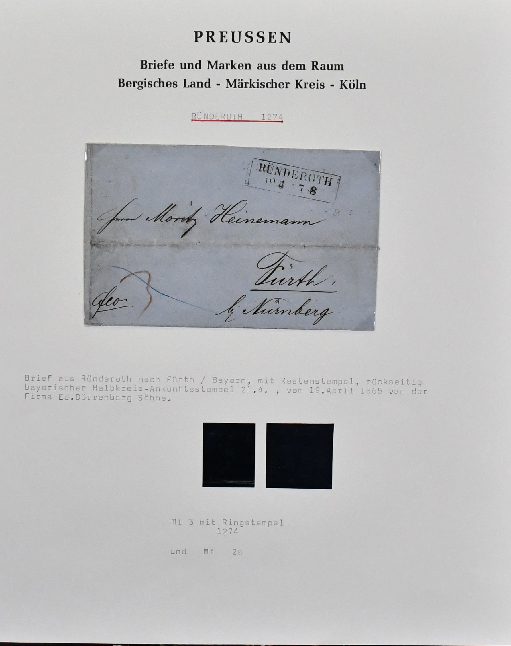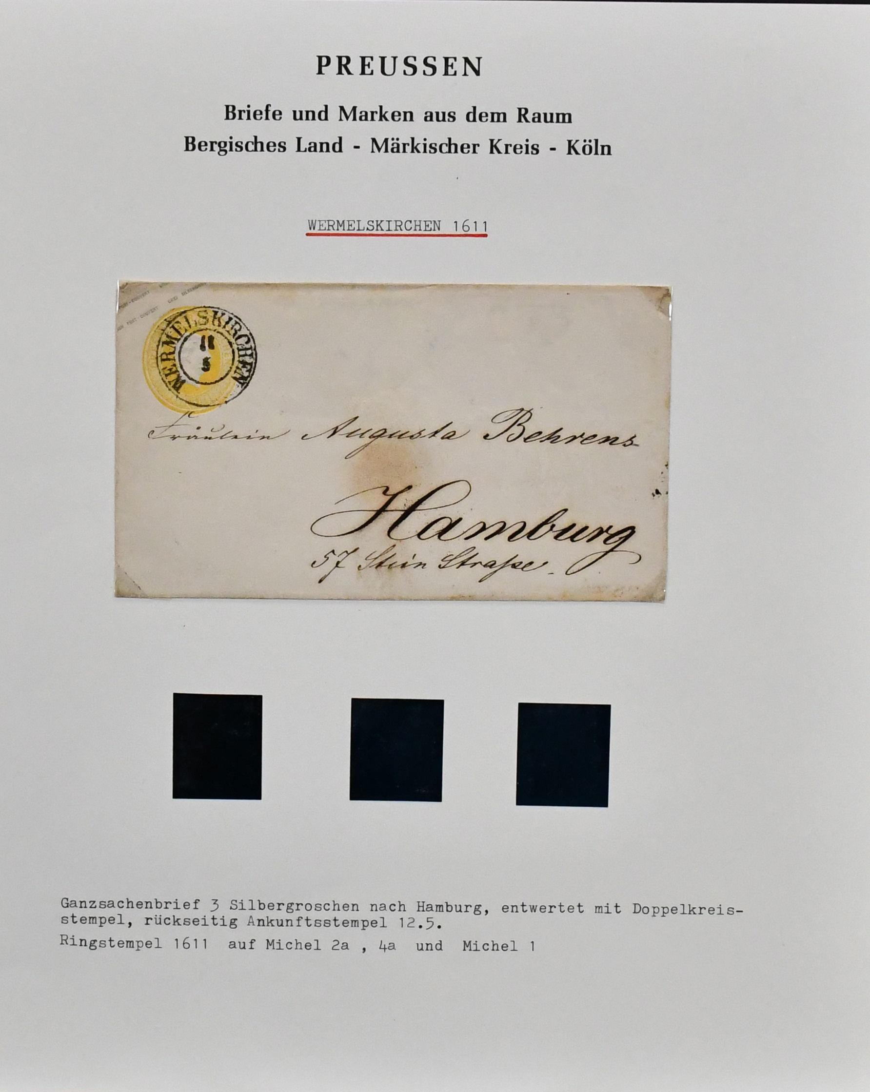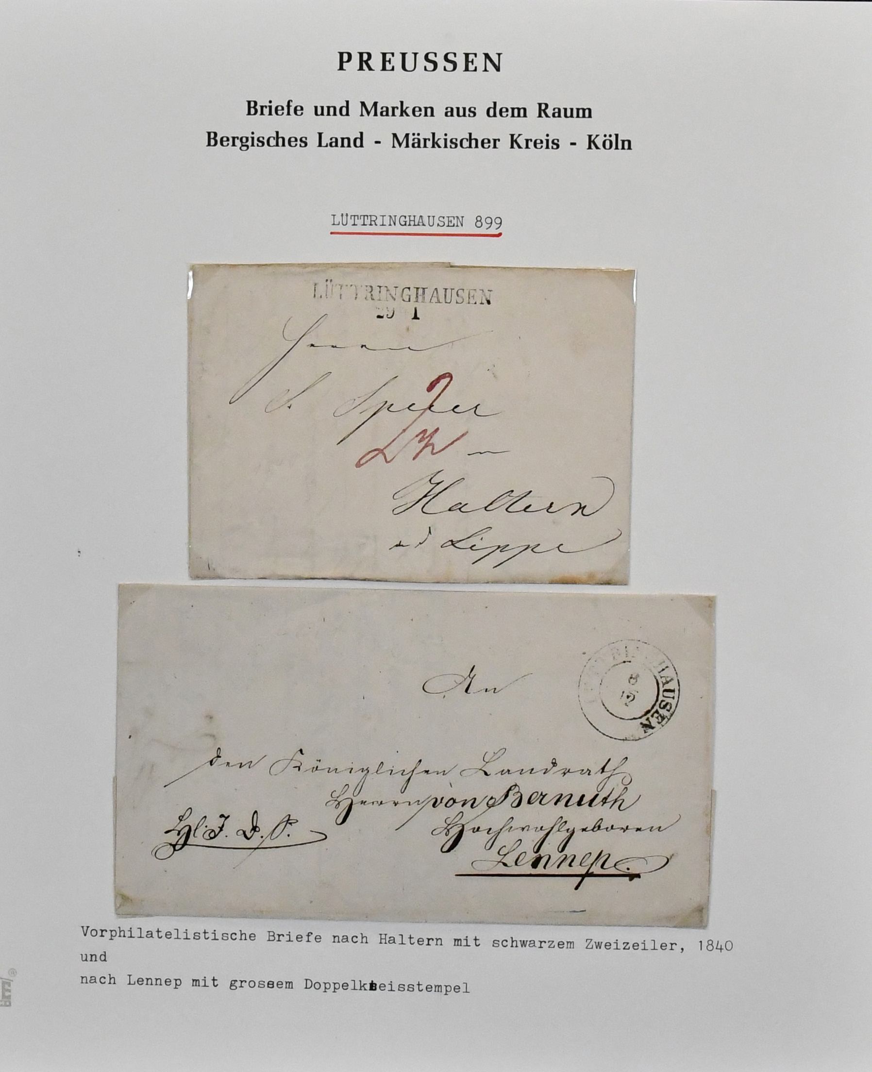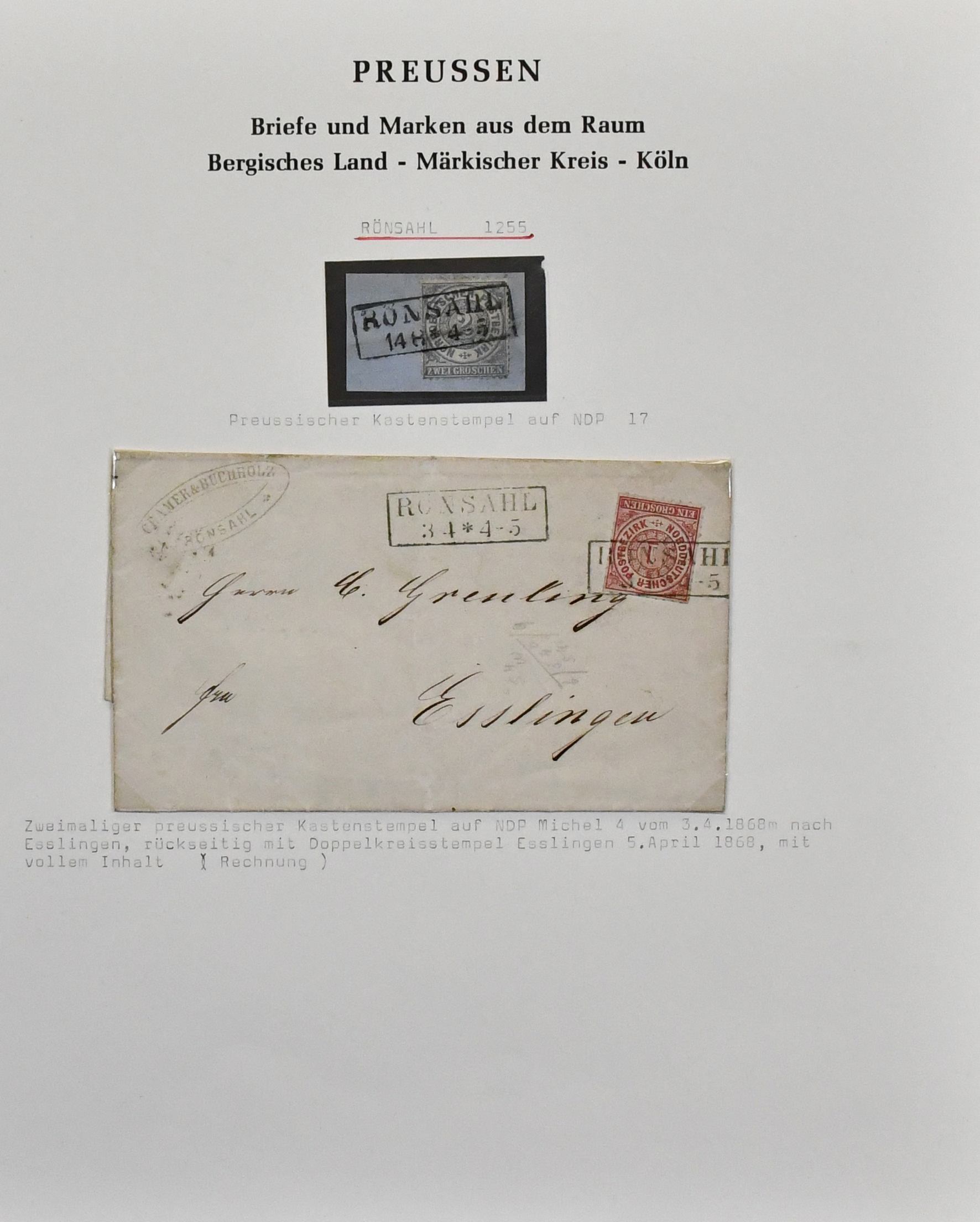 "Bergisches Land/Märkischer Kreis/Umgebung von Köln", Sammlungsteile mit Marken, Briefstücken und alleine 45 Belegen, u.a. NS-Brief von Lüdenscheid, Belege von Lüttringhausen, Nümbrecht, Rönsahl, Gummersbach, Ründeroth (u.a. Brief mit Nr. 15 und zweimal 19a, kl. Mgl.), Wipperfürth, Waldbroel, Wiehl, Wermelskirchen etc.
