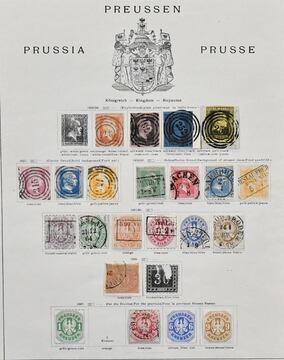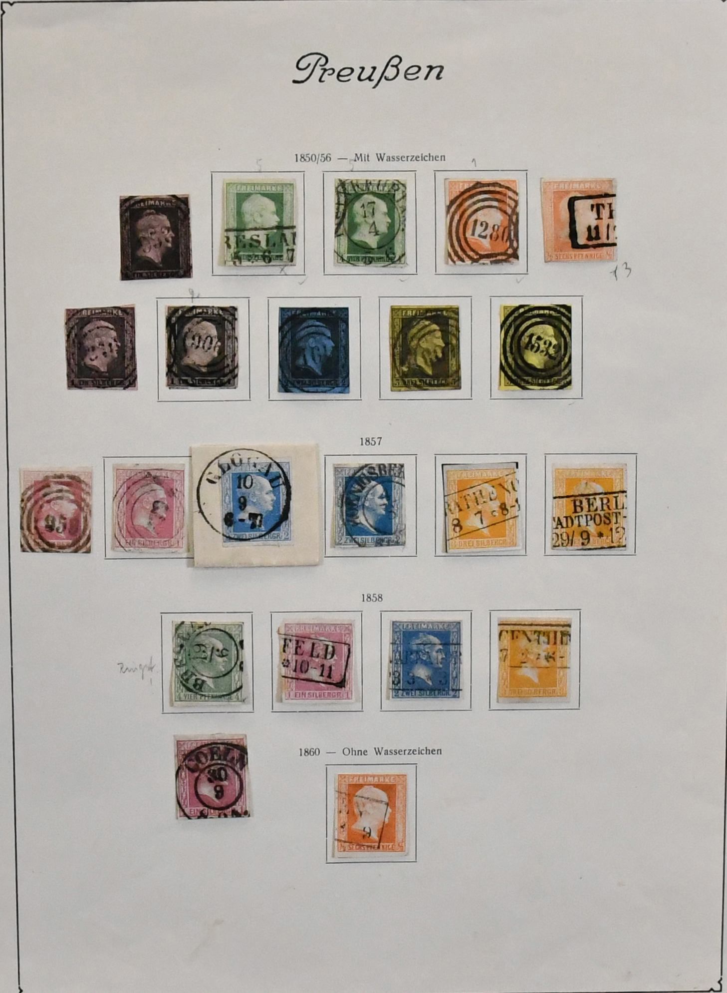 Preußen, bis auf einen Wert kpl. Slg. auf Vordrucken (statt Nr. 8 zweimal Nr. 12), dazu diverse Oldenburg-Werte inkl. Nr. 15-19 kpl. gest.
