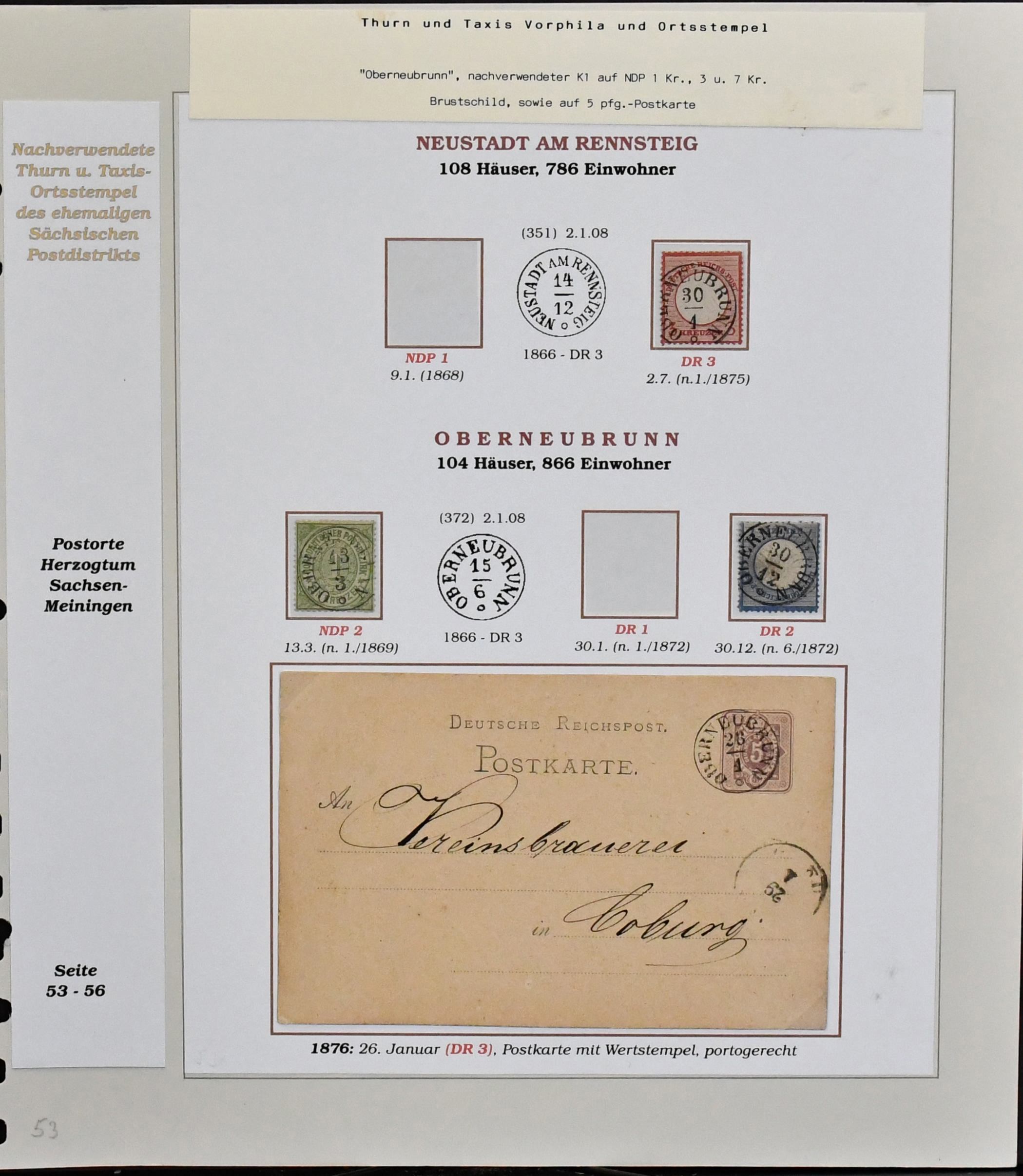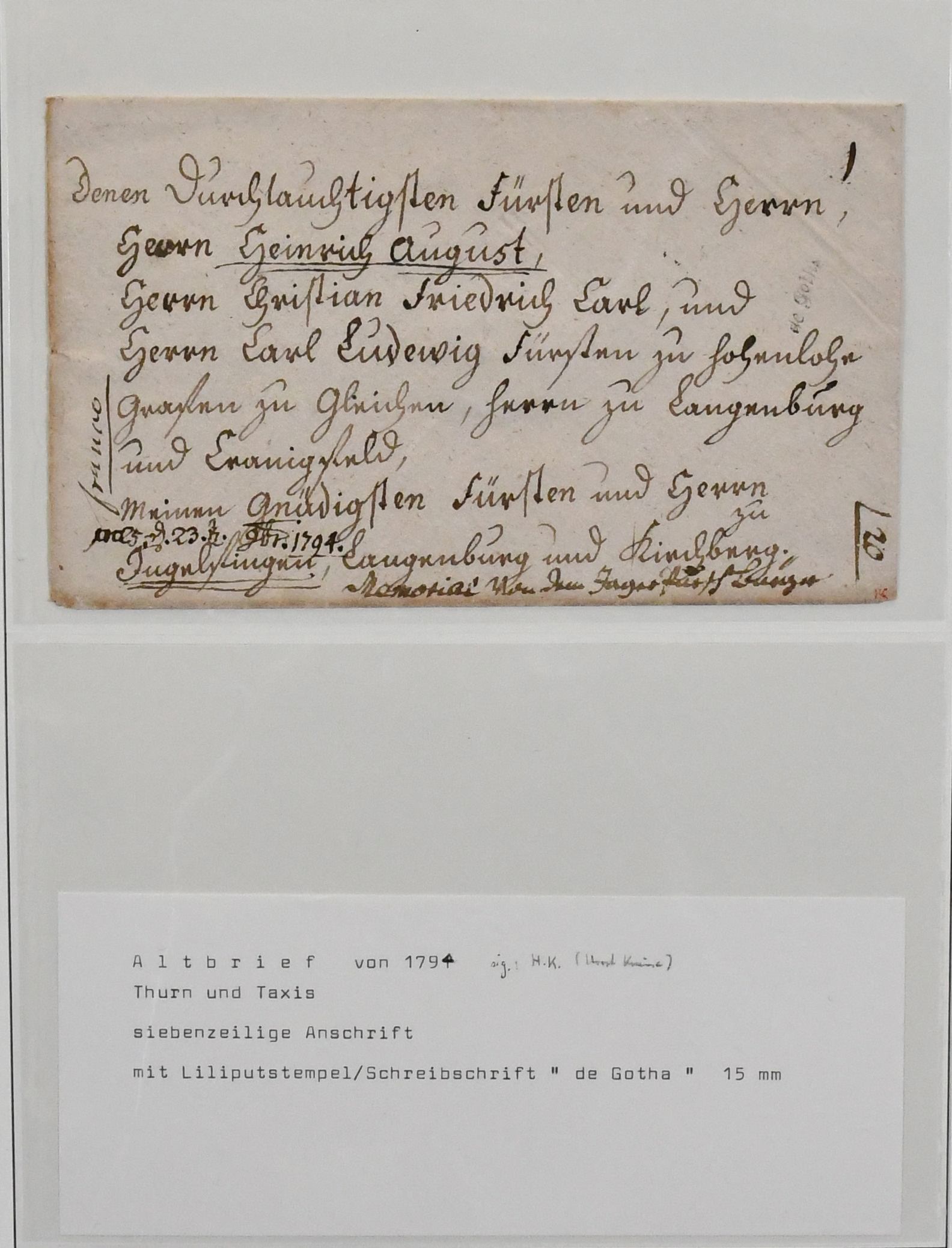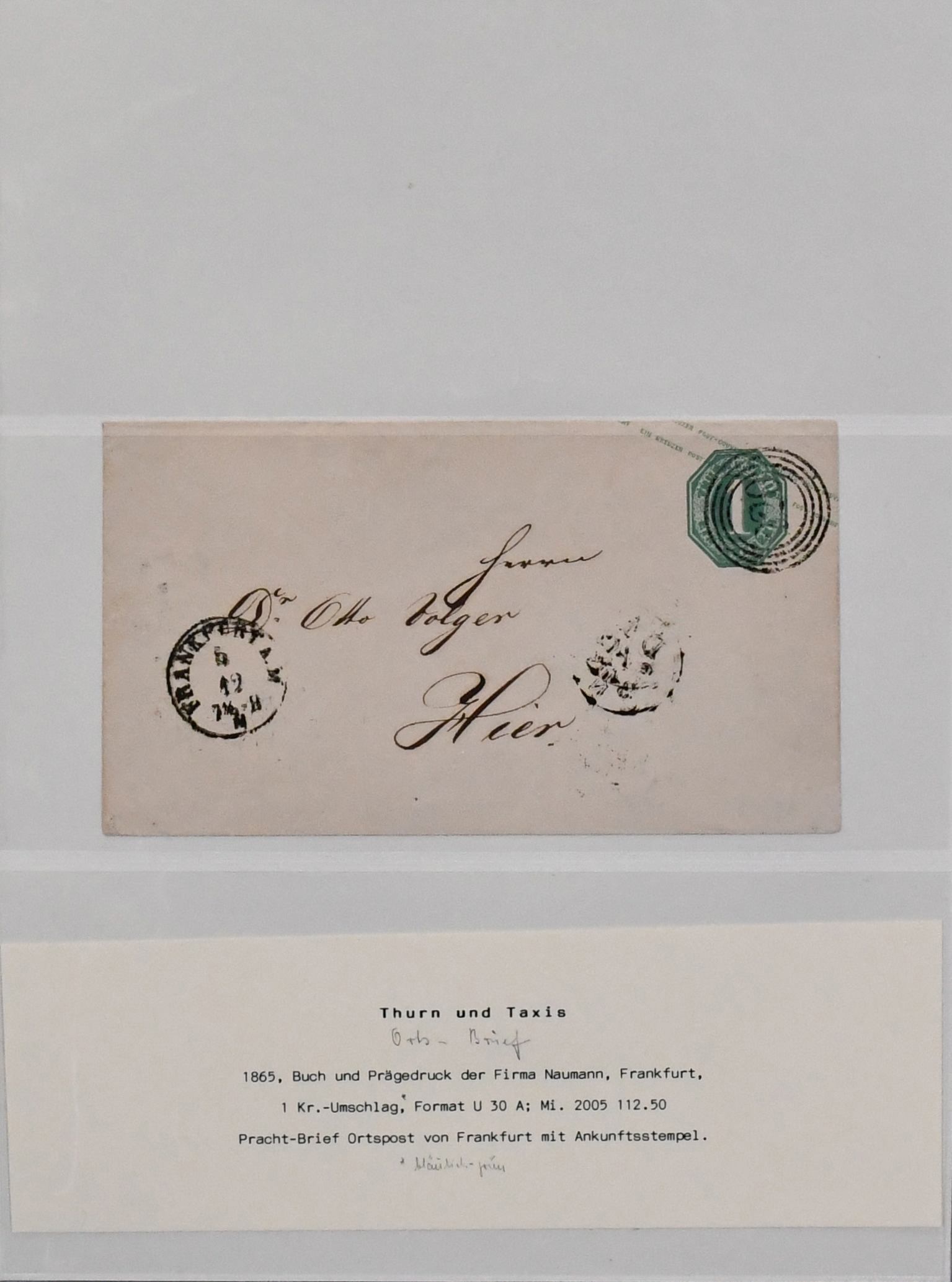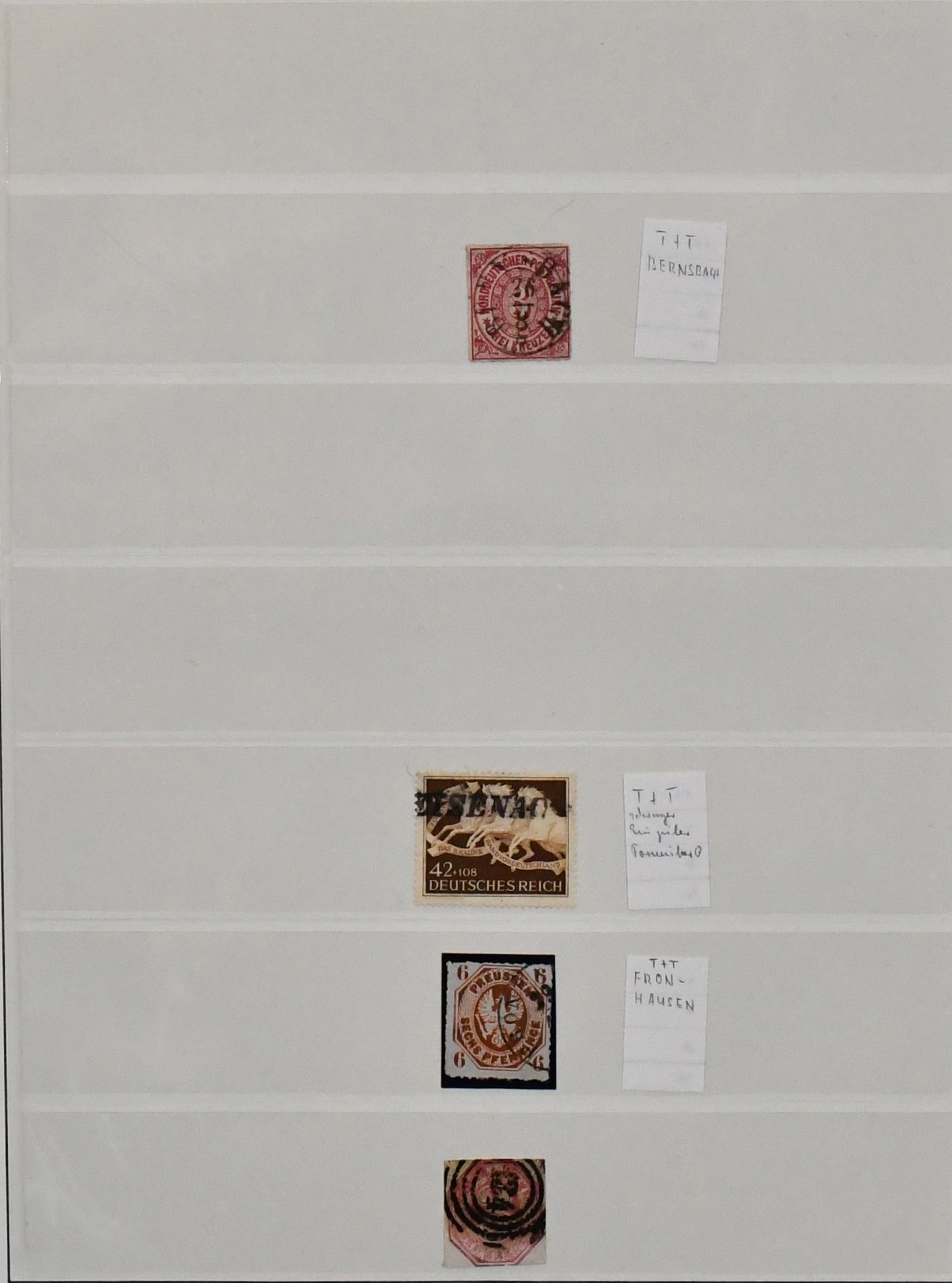 Thurn u. Taxis, uriger Posten ab Vorphila, u.a. kleiner Schreibschrift-L1 "de Gotha" auf Brief 1794, Marken-Sammlung, Stempel, u.a. vorphil. L1 "Eisenach" noch 1943 wiederverwendet (Feuser unbekannt), Markenbriefe, u.a. Nr. 9b/10b auf Brief nach Frankreich, Nr. 16, seltener Nummernstempel-Brief "370" nebst K1 von Jugenheim, Ganzsache U30A gebraucht etc.