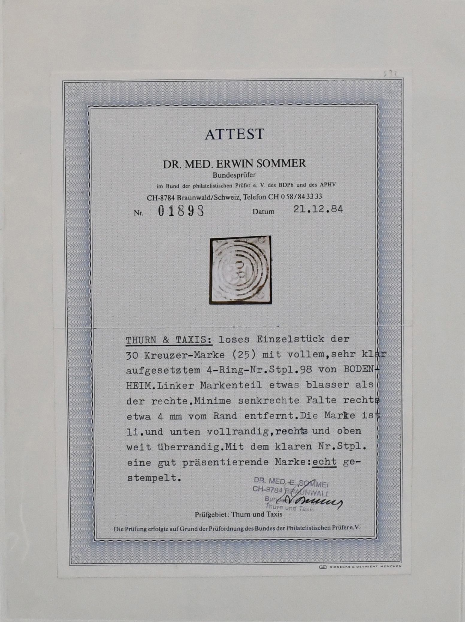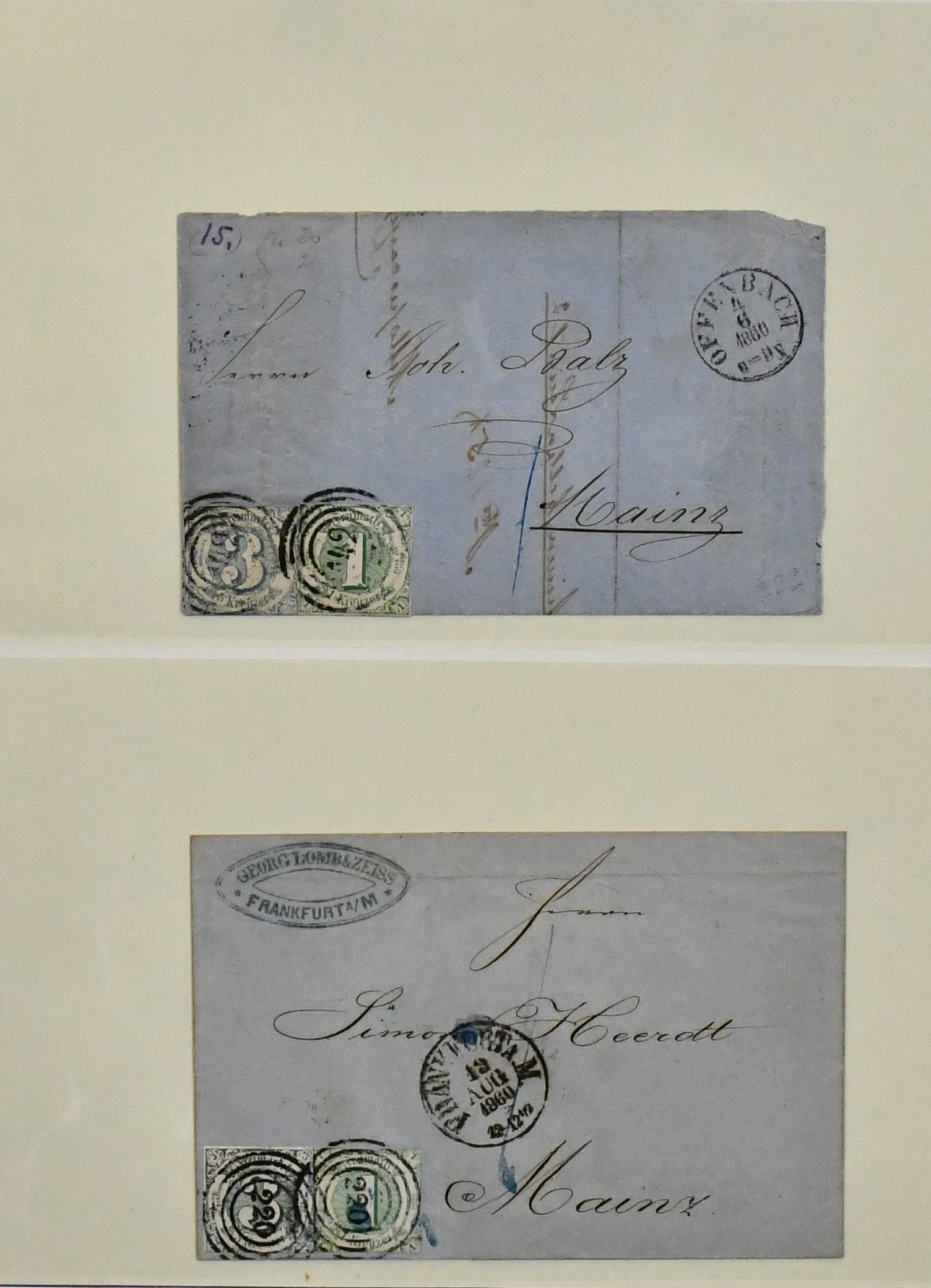 Thurn und Taxis, reichhaltige gestempelte Slg. mit vielen schönen Marken, Briefstücken, breit- bis riesenrandigen Luxusstücken, Nr. 19, 23I Luxus, gepr., 36 etc. Mi. 7800,- plus die vielen besseren Stempel, z.B. der stumme Vierring-Versuchsstempel von Frankfurt auf Nr. 8, Nr. 43 mit bayerischem Bahnpost-HK usw.