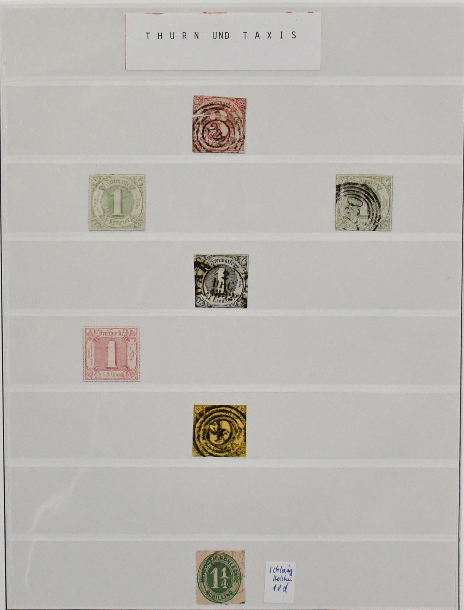 Thurn und Taxis, alter Bestand in untersch. Erhaltung mit 160 Werten ab Nr. 1(2), dabei Nr. 2 gest., 13-19 gest. (teils II. Wahl), 35 gest. etc. Fundgrube! Dazu eine Steckkarte mit Altdeutschen Fälschungen