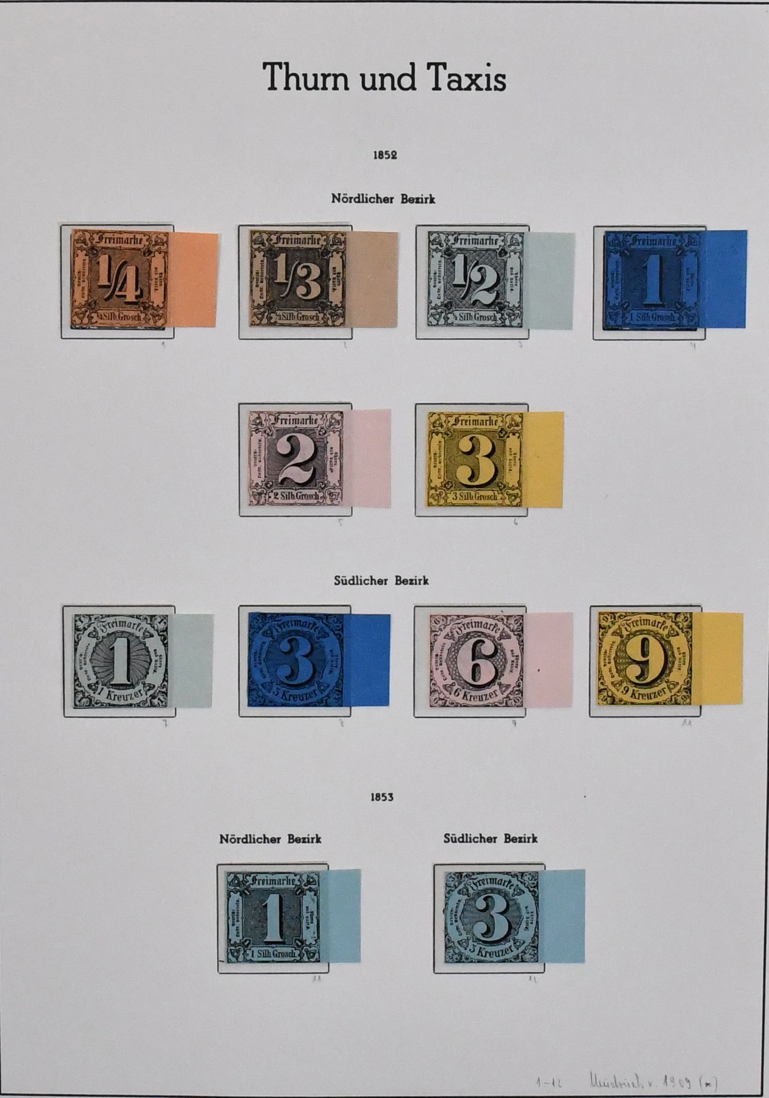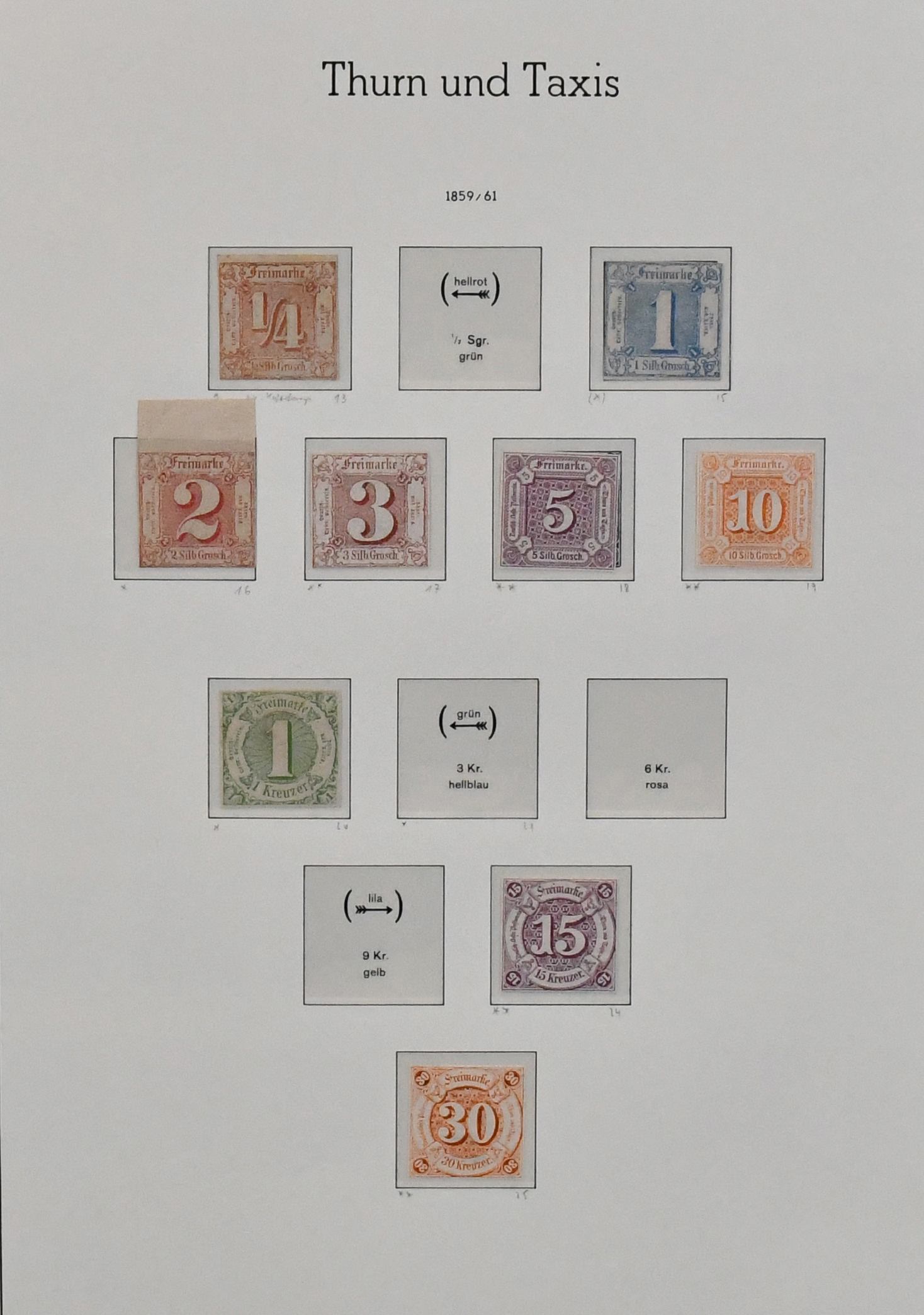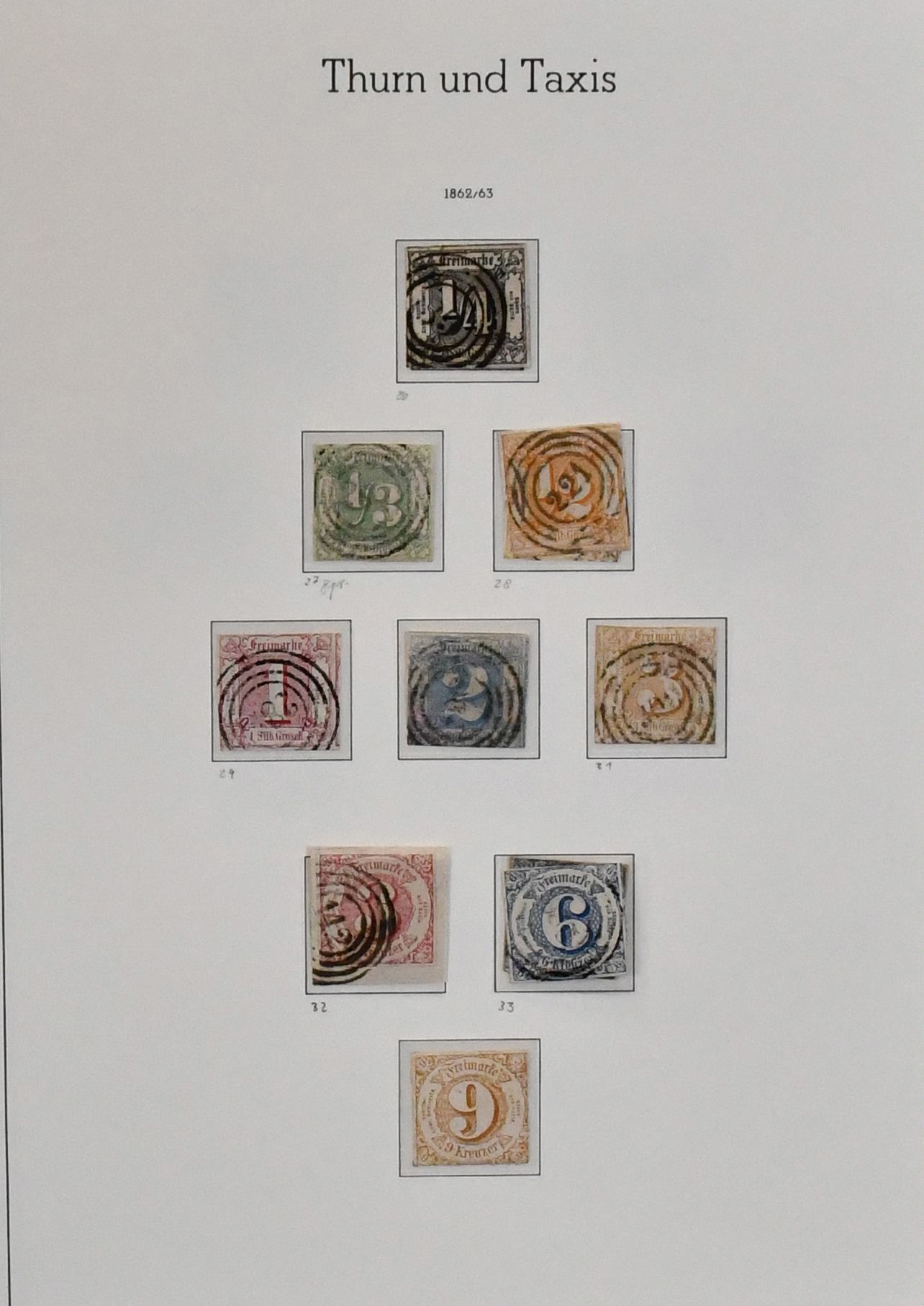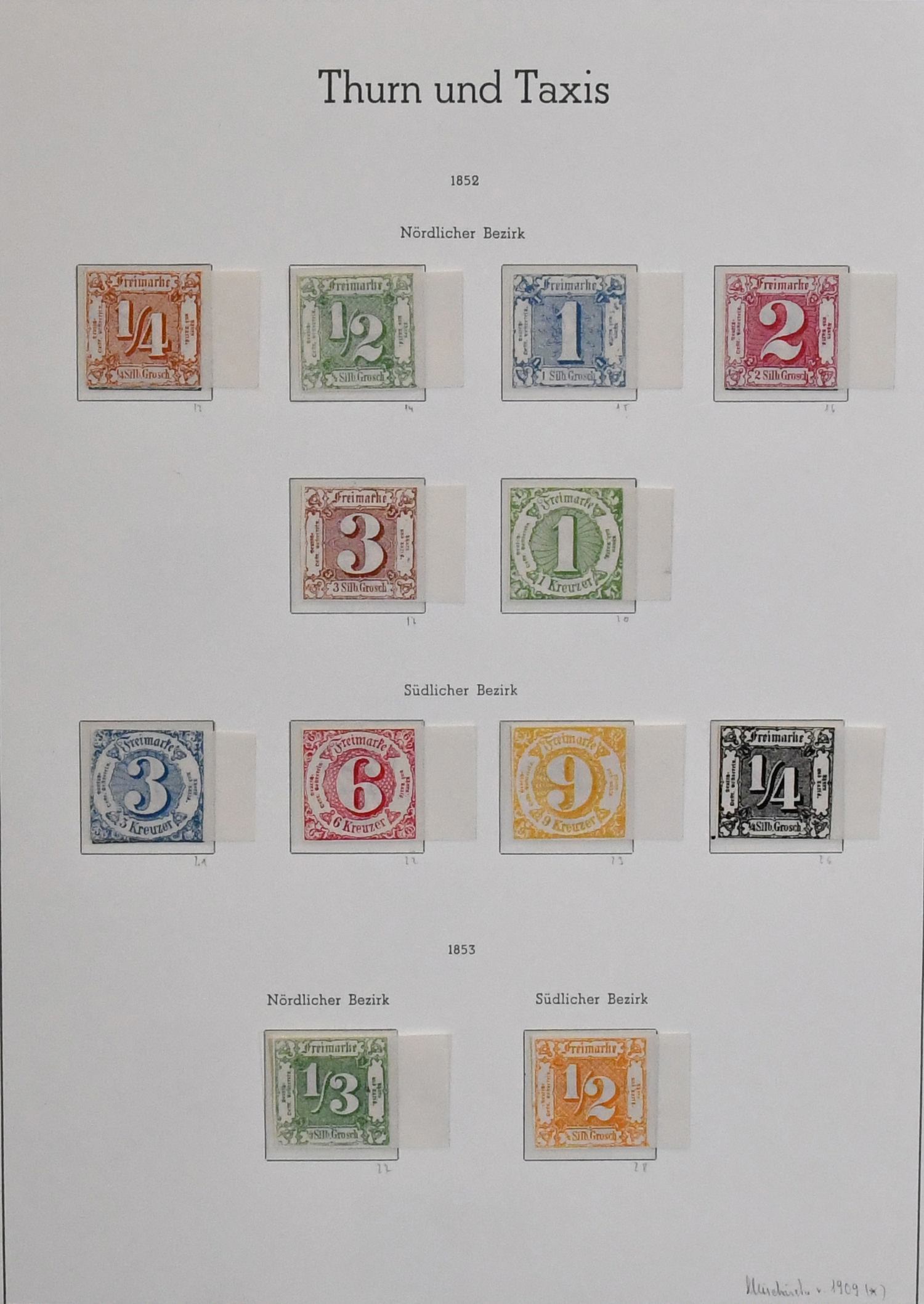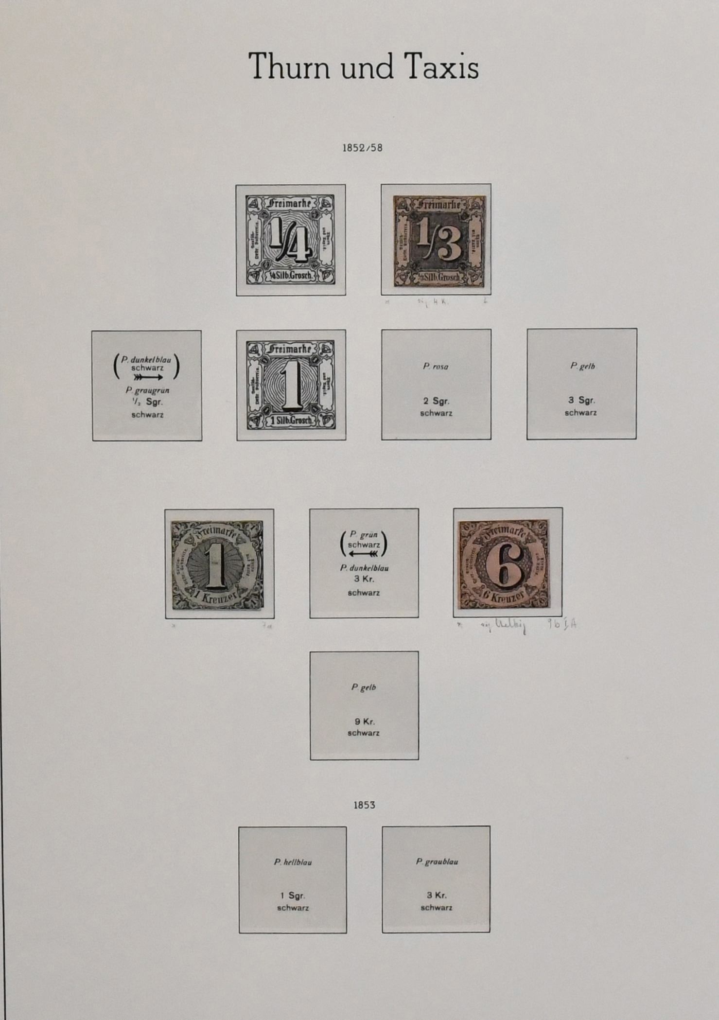 Thurn und Taxis, relativ kpl. Slg. in untersch. Erhaltung auf Vordrucken, einiges nicht mitgerechnet, Nr. 19 Fotoexp. Sem. Mi. 2500,-