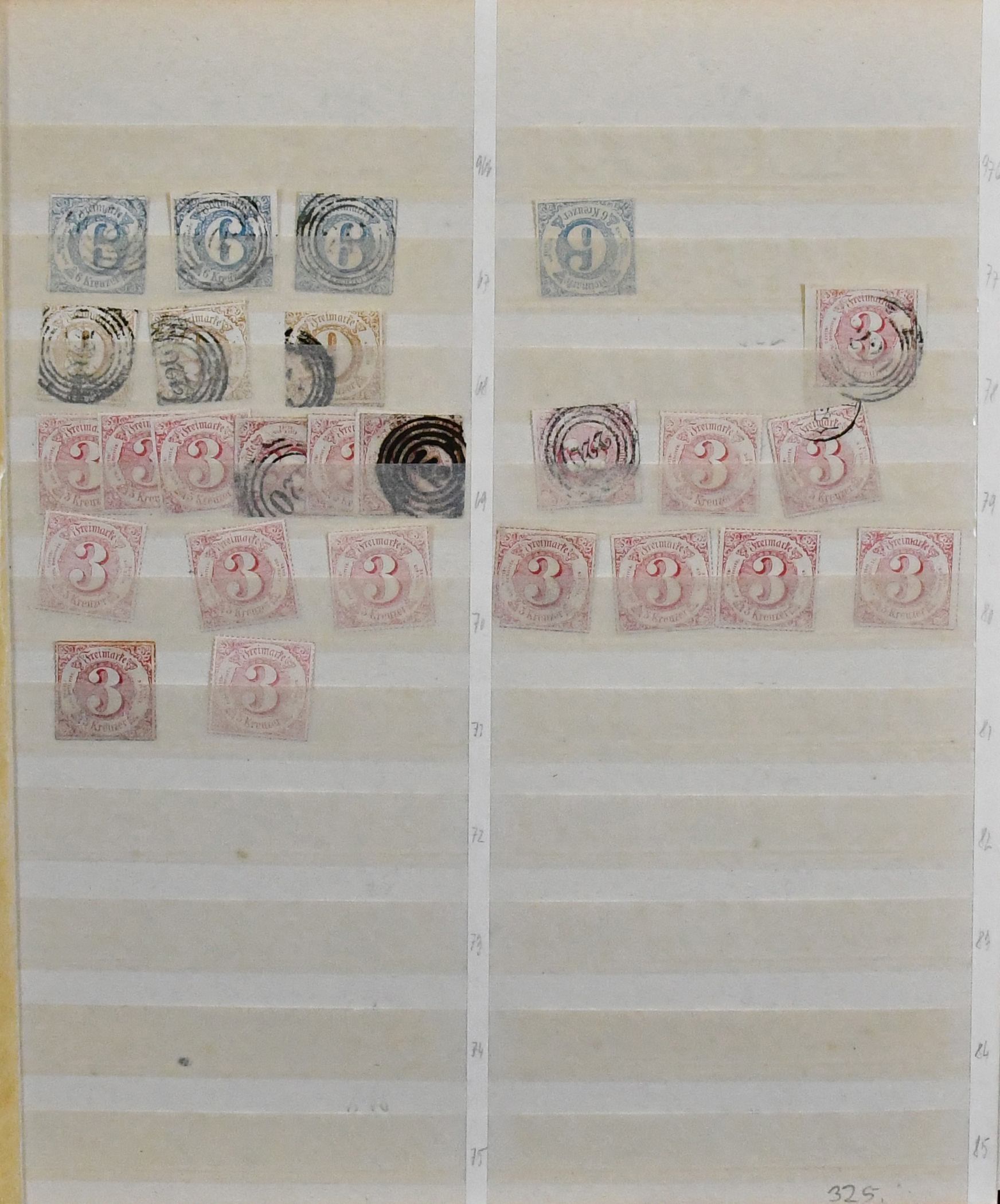 Thurn und Taxis, Sammlung von etwa 80 Werten, beginnend mit zweimal Nr. 1 gest., ferner Nr. 3/6, 13(2), 18, 23/24, 35, je gest., usw. Mi. rund 3000,-