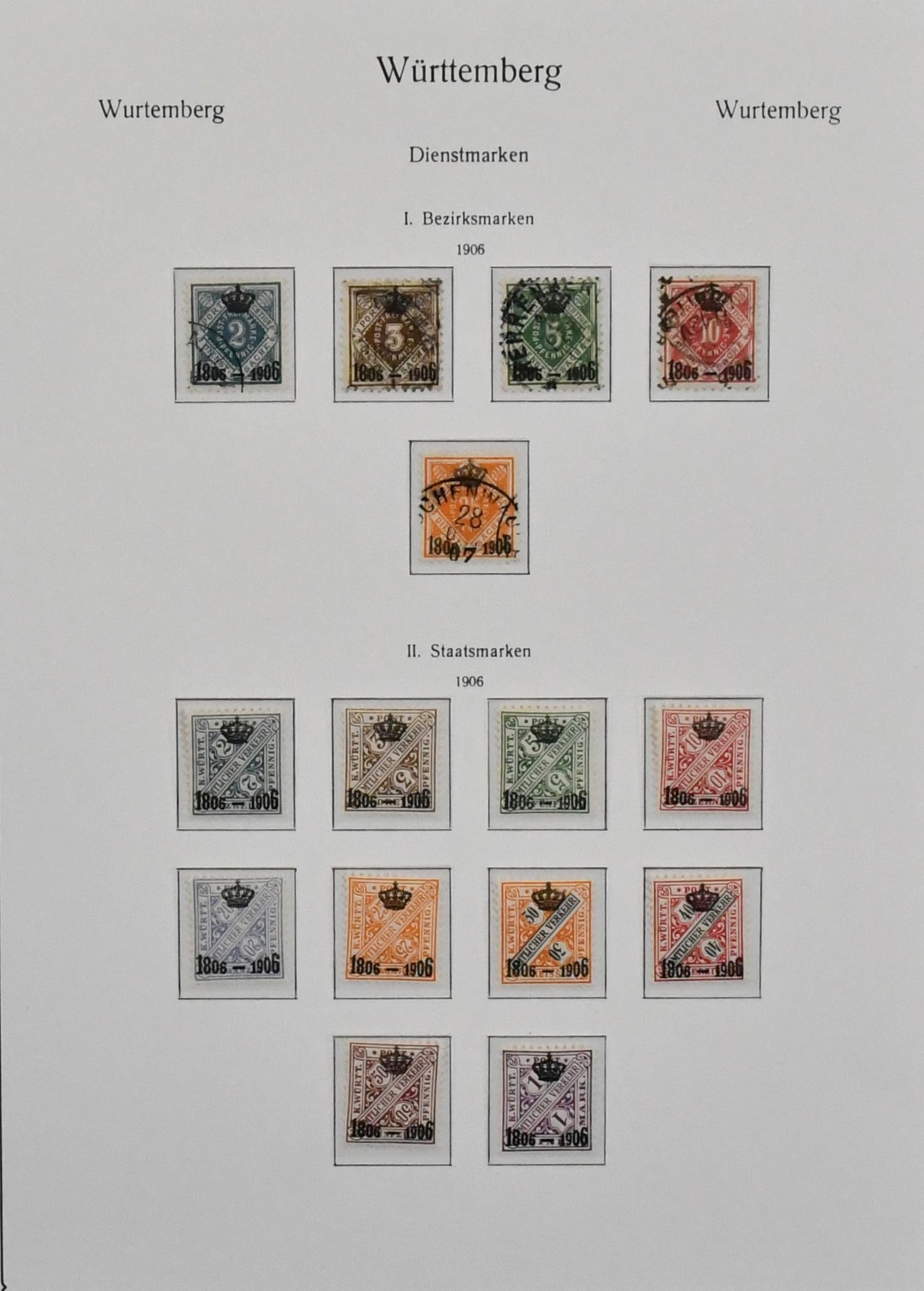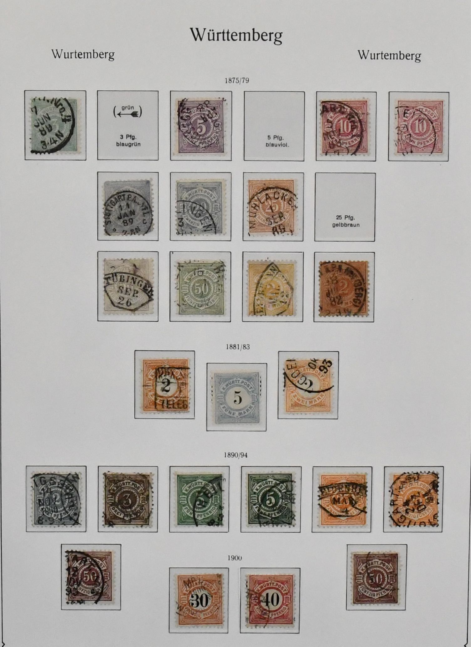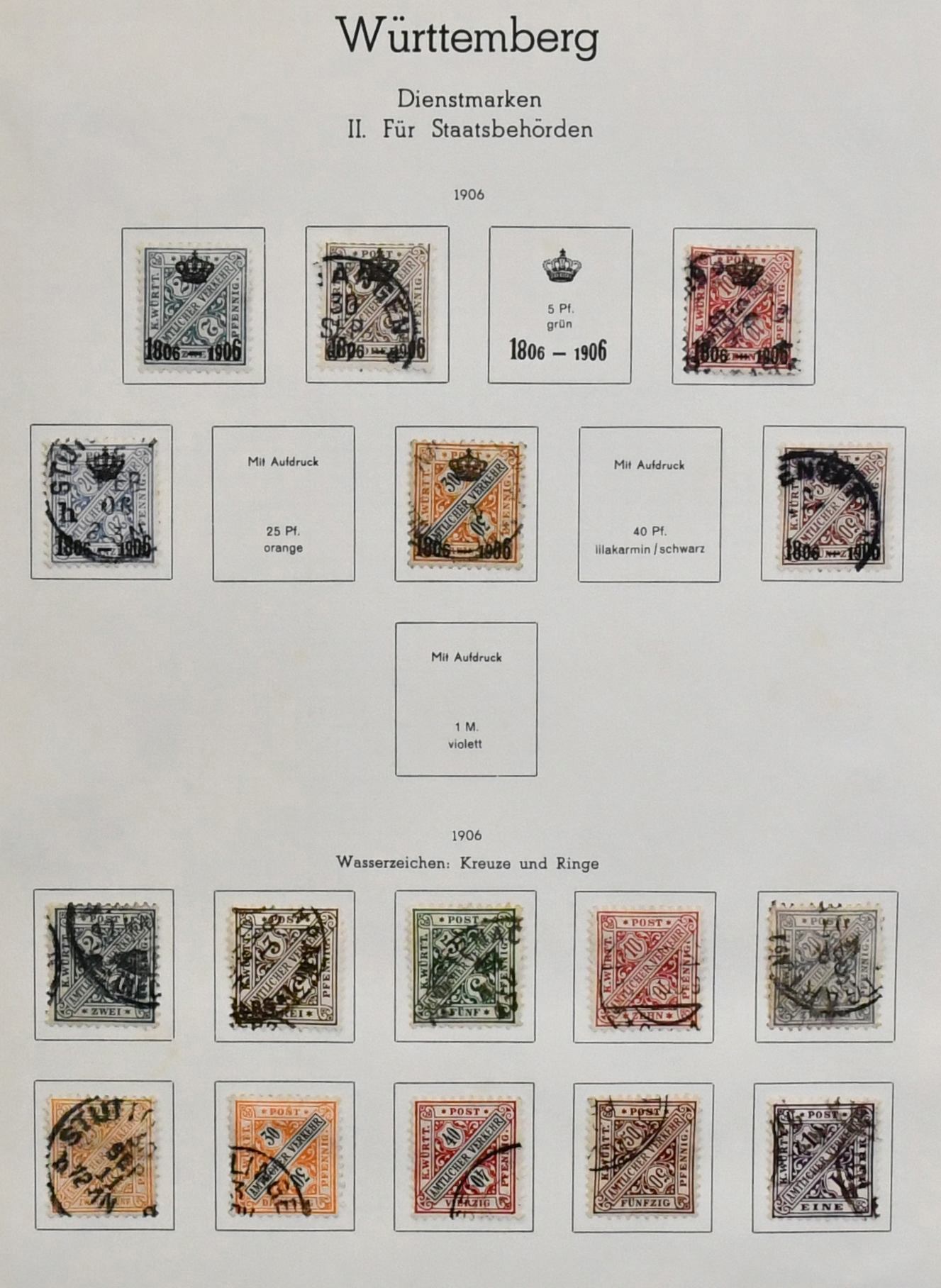 Württemberg, 1851-1918, komplette Slg. auf Vordrucken, die Kreuzerzeit nur gestempelt (Nr. 42b Fotoexp. Heinrich), Pfennigzeit auch ungebraucht. Mit allen 18 Kr.-Werten etc. Erhaltung üblich untersch. Mi. etwa 19.000,-