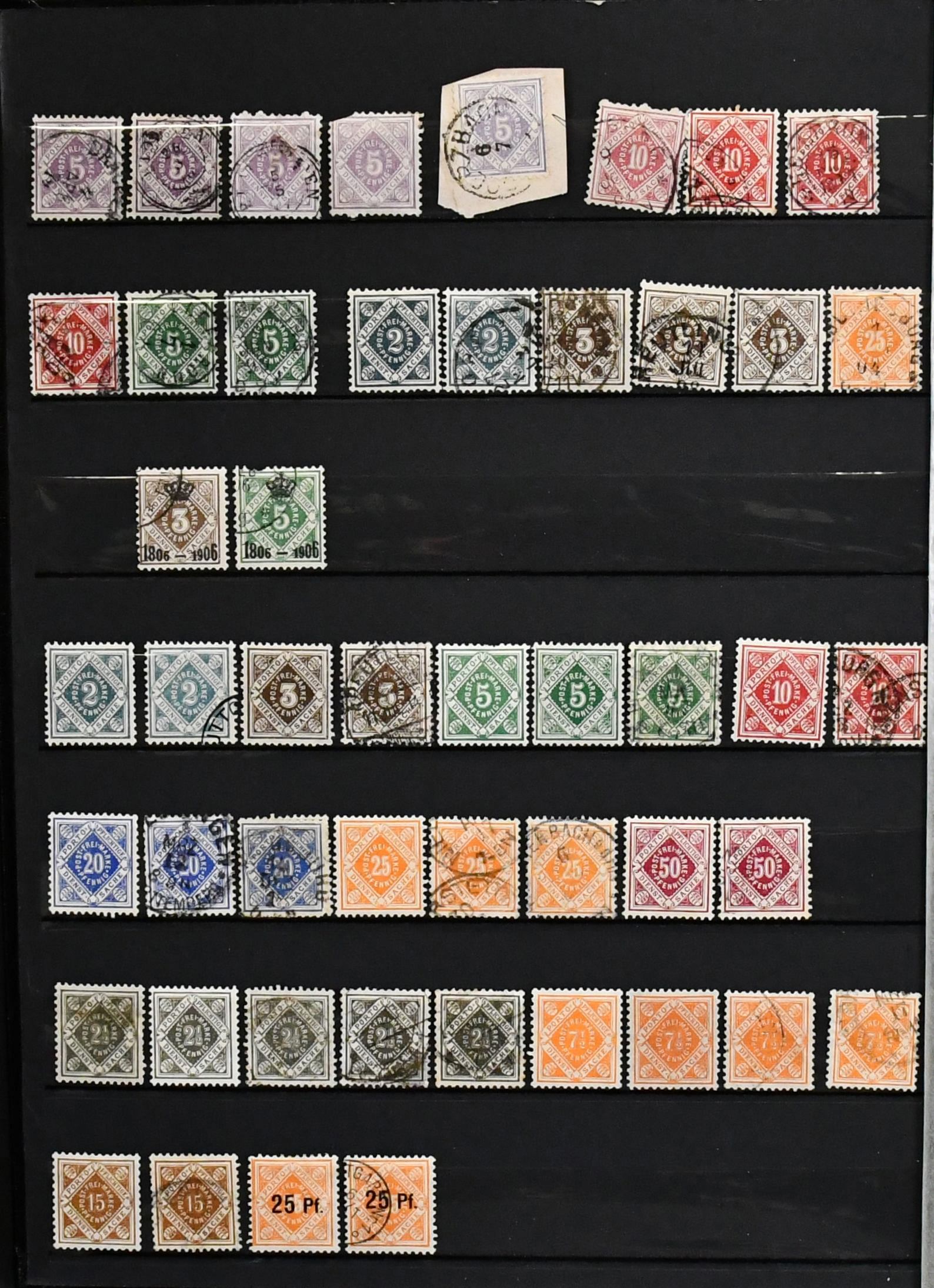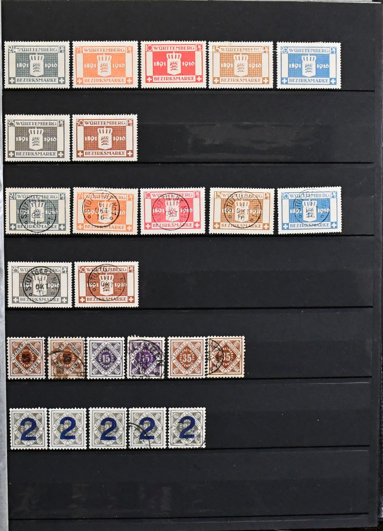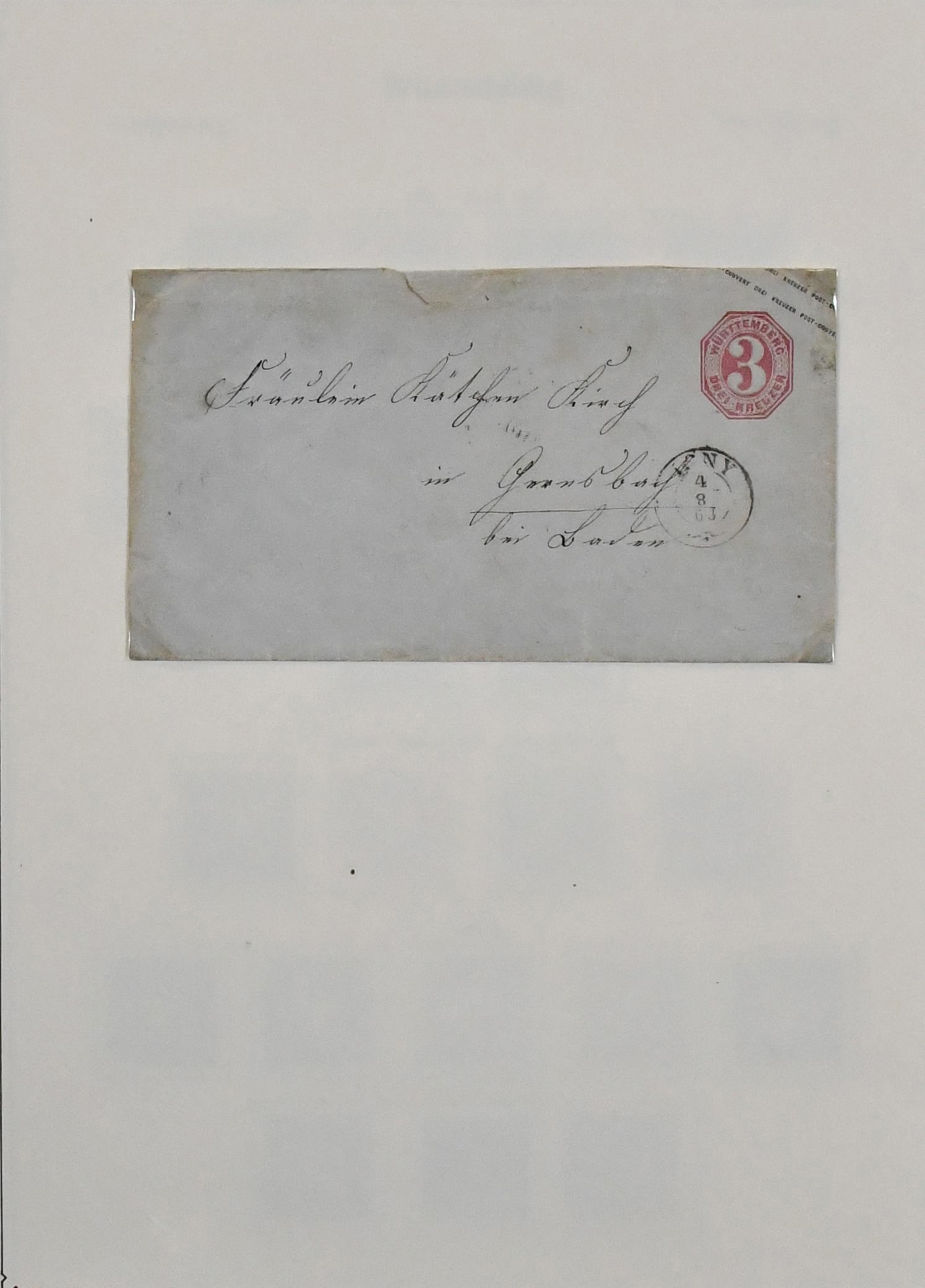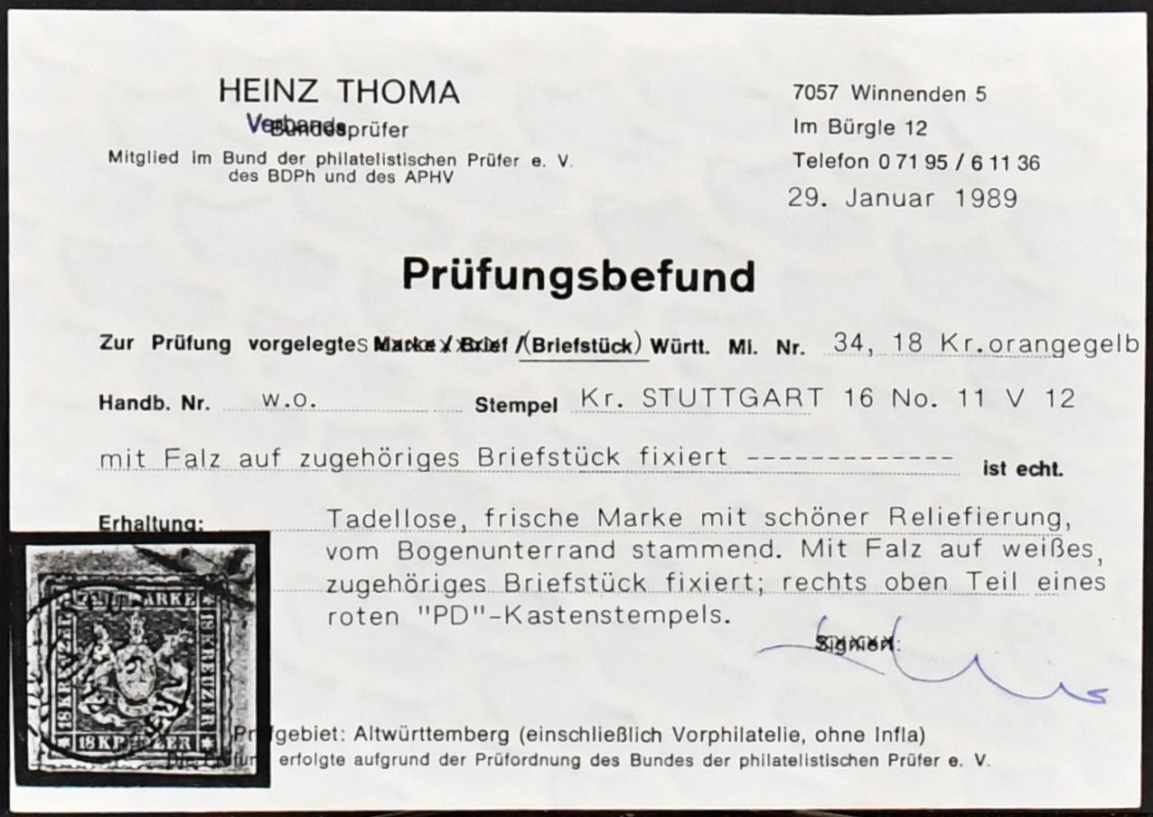 Württemberg, teils hübsch spezialisierte Slg., mit einigen Belegen aufgelockert, dabei auch bessere Stempel (alle unberechnet) und Besonderheiten wie zwei Briefe mit Retourmarken (auch unberechnet), ab Nr. 1a-c, letztere gepr. (Mi. 940,-), Nr. 2 mit teils geprüften Typen, 3a/b, 4a, c 15a ND ungebr. (Mi. 750,-), 16ya ungebr. (mit Hälfte Falz gerechnet, 650,-), 16yb gepr. Prachtbriefstück, 18ya ungebr. (500,-), 19xa, 19yb auf Brief, 20y auf Bfst. (2500,-), 24 (900,-), 26a-c, 27a, c, 28a-d, 29, 33a/b, 35a, Eirund einmal farbig gest., 37a/b, 39b auf Auslandsbrief, 40a/b, sowie aus der Pfennigzeit u.a. zwei Paare Nr. 49 gest. (800,-), Nr. 52, 53a/b. Mi. über 13.000,-