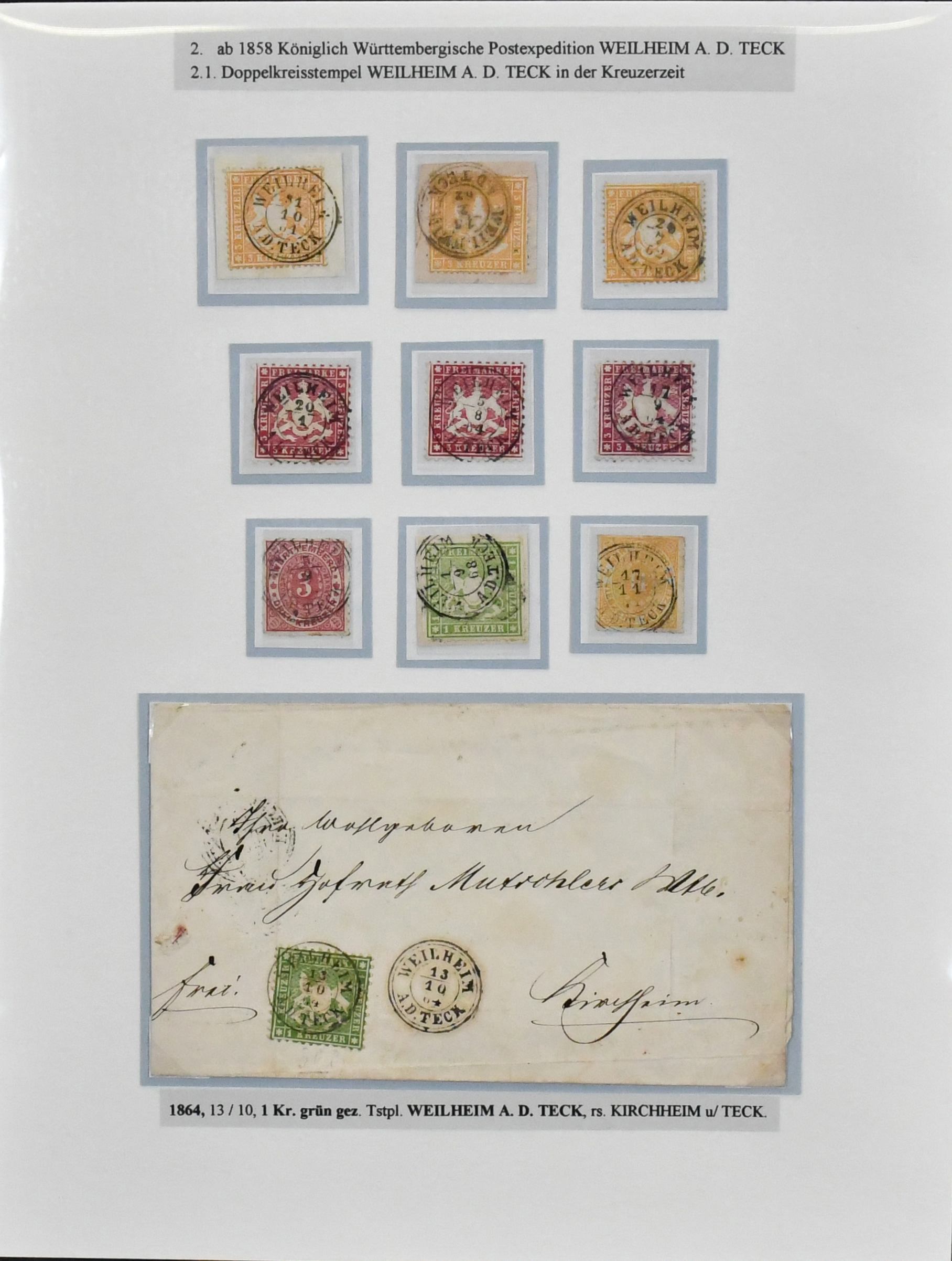 Württemberg, Partie der Kreuzerzeit inkl. schön gest. Briefstück Nr. 3y (sign. Thoma), Nr. 6(2), 8(2), Brief Nr. 25 etc.