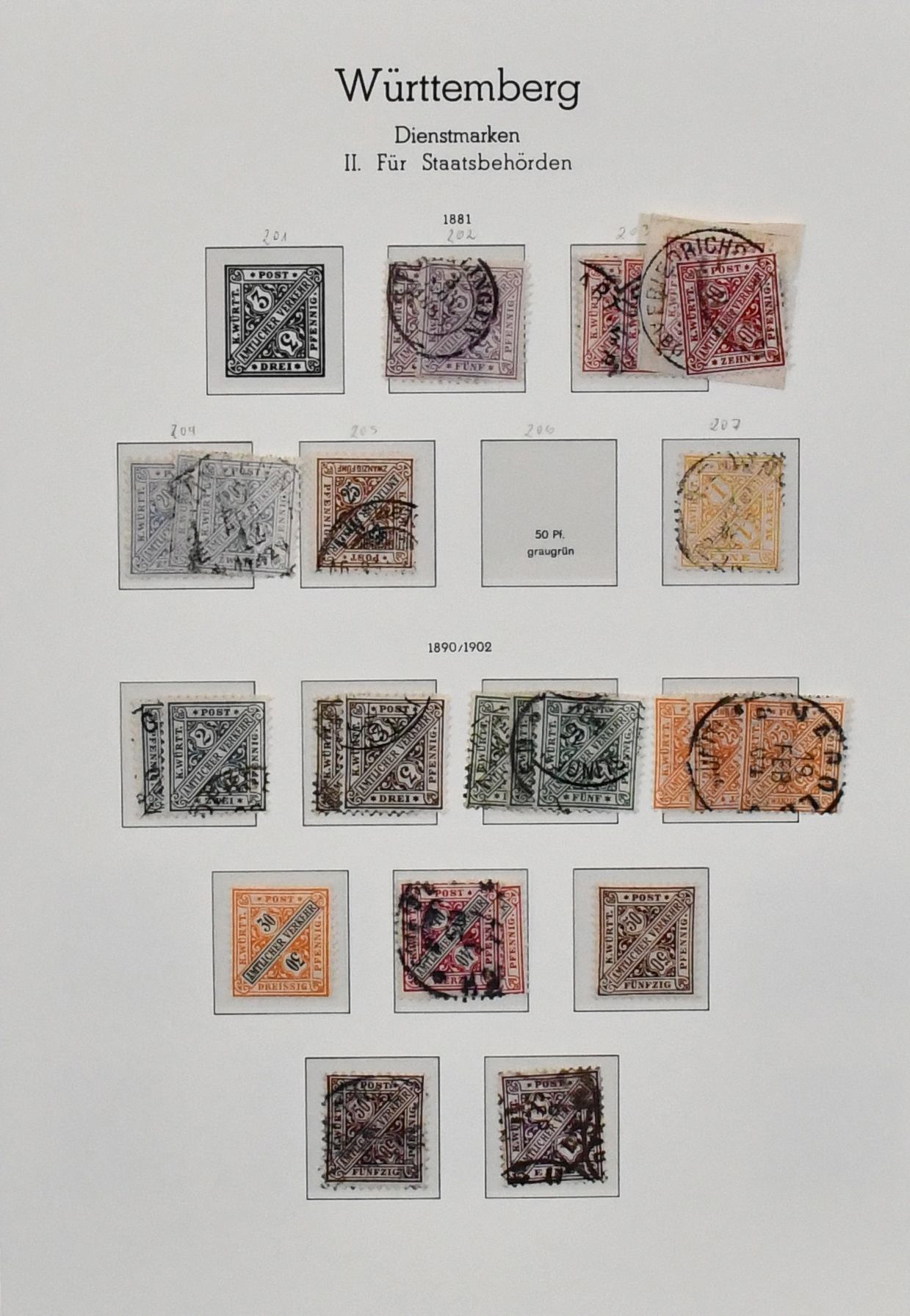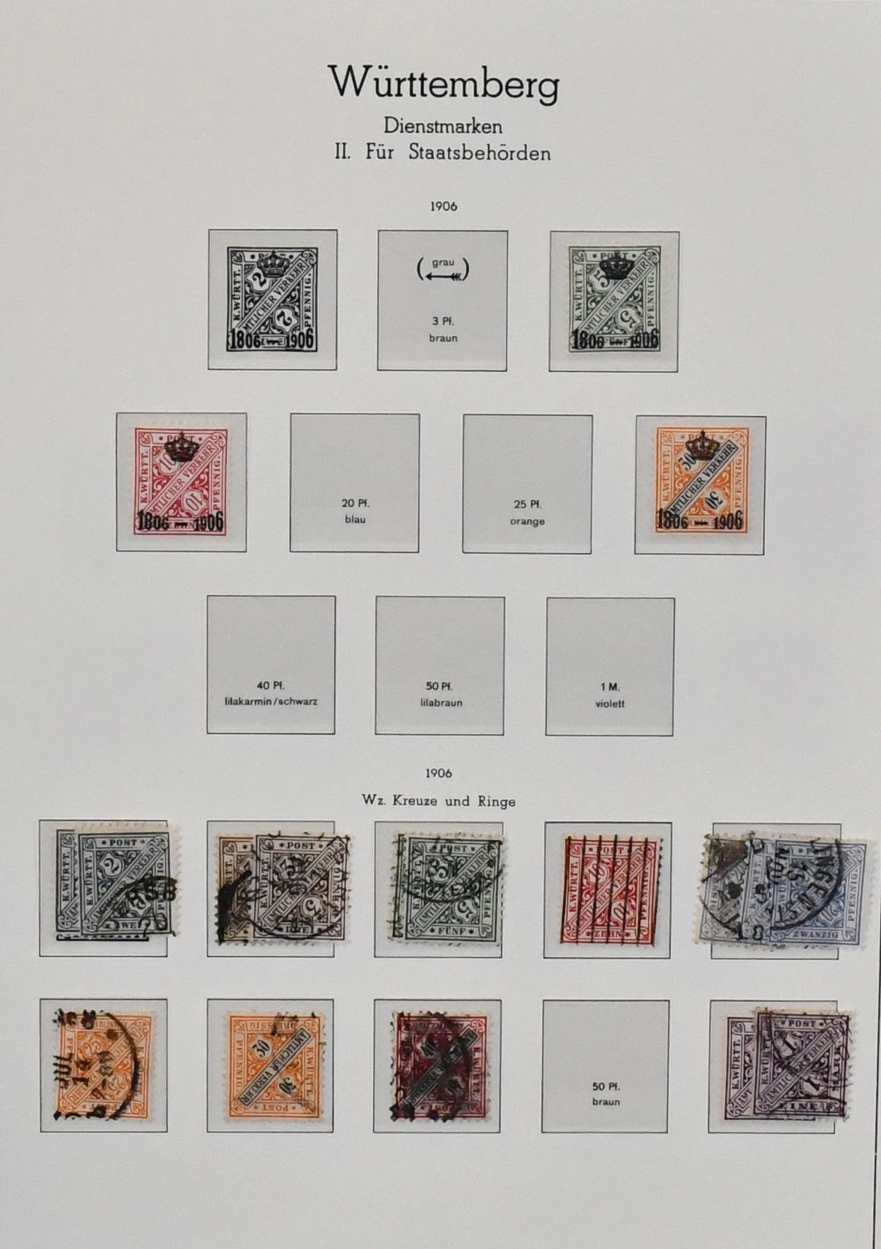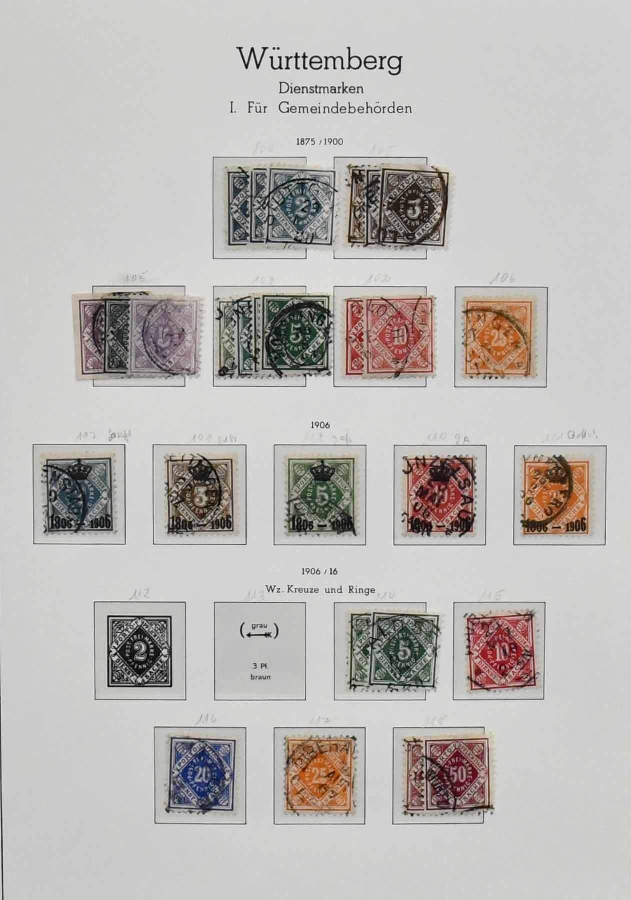 Württemberg, Vordruck-Slg. ab Nr. 1-4, oft mehrfach inkl. Farben, mit vielen mittleren Werten inkl. Nr. 6-9, 11-14, je oft mehrf., 16, 35(2), 34-43 oft mehrfach, sowie Pfennigzeit