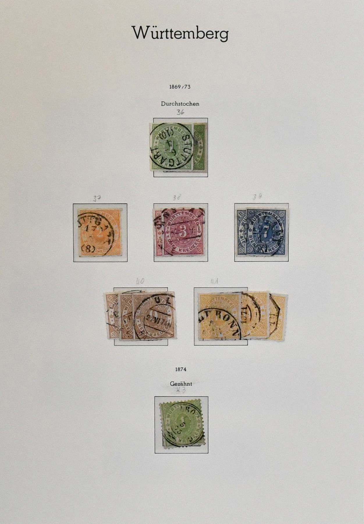 Württemberg, 1851/1920, Slg. ab Nr. 2/4, mit u.a. Nr. 8, 14, 36/41, 43 usw., im Leuchtturm-Vordruckalbum. Der Michelwert der Kreuzer-Ausgaben beträgt bereits 1250,- plus 200 Werte der Pfennig-Zeit inkl. einiger kpl. Sätze unberechnet