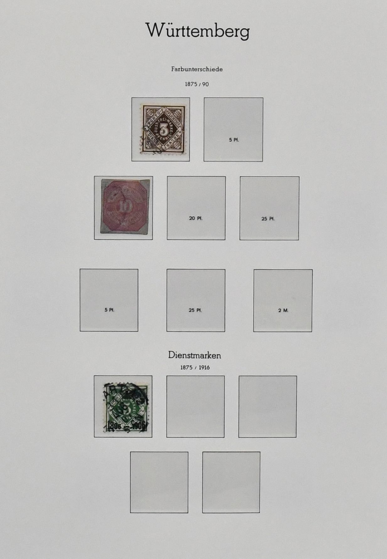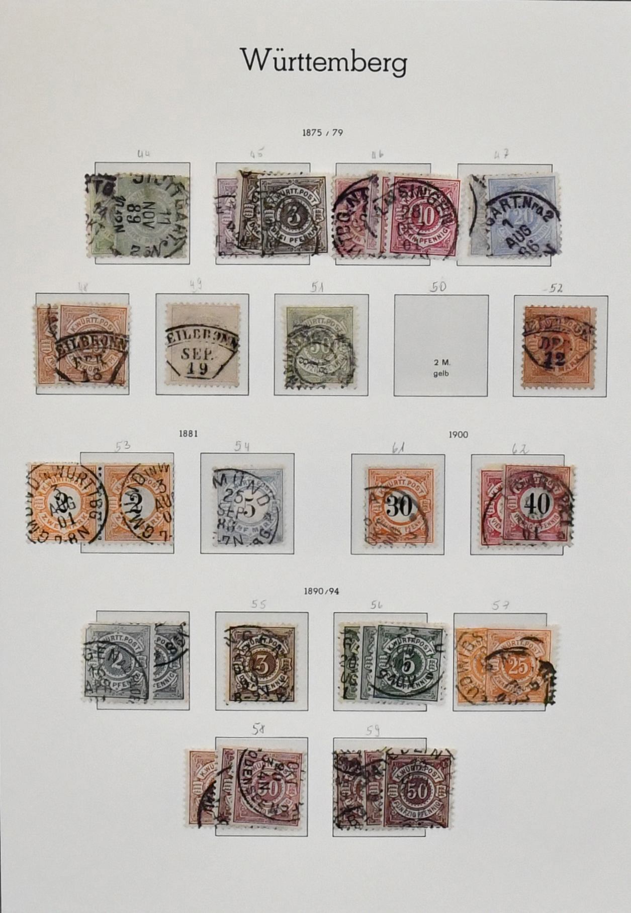 Württemberg, 1851-1920, gest. Slg. auf alten Schaubek-Vordruckblättern, dabei u.a. Nr. 3b und 4a je breitrandig, Nr. 11, 17y, 18x, 25-27, 31-33, 39, 41, 48-49 usw.