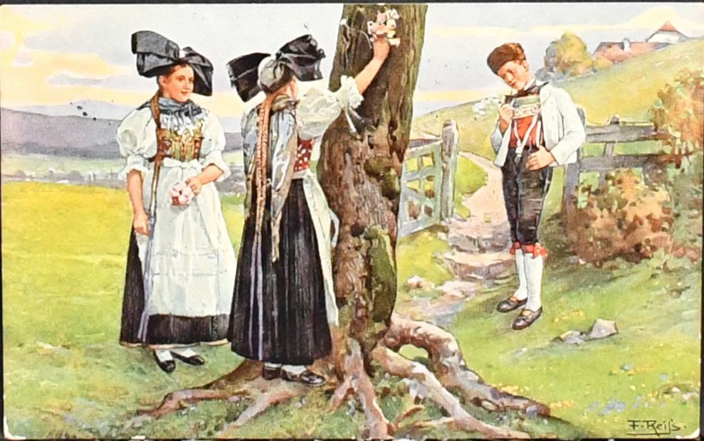 Schwarzwaldkünstler Fritz Reiß, Partie von 59 Aks, mit Lithos, untersch. Erhaltung