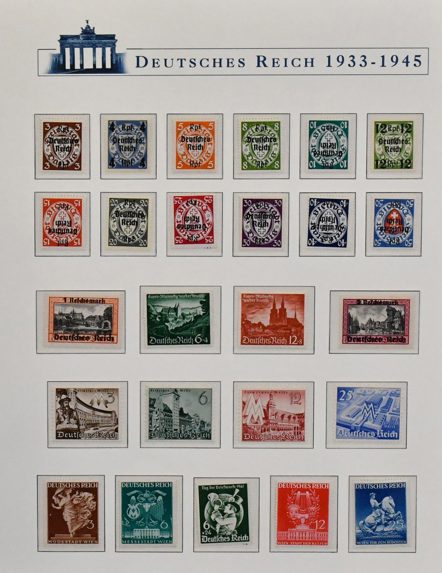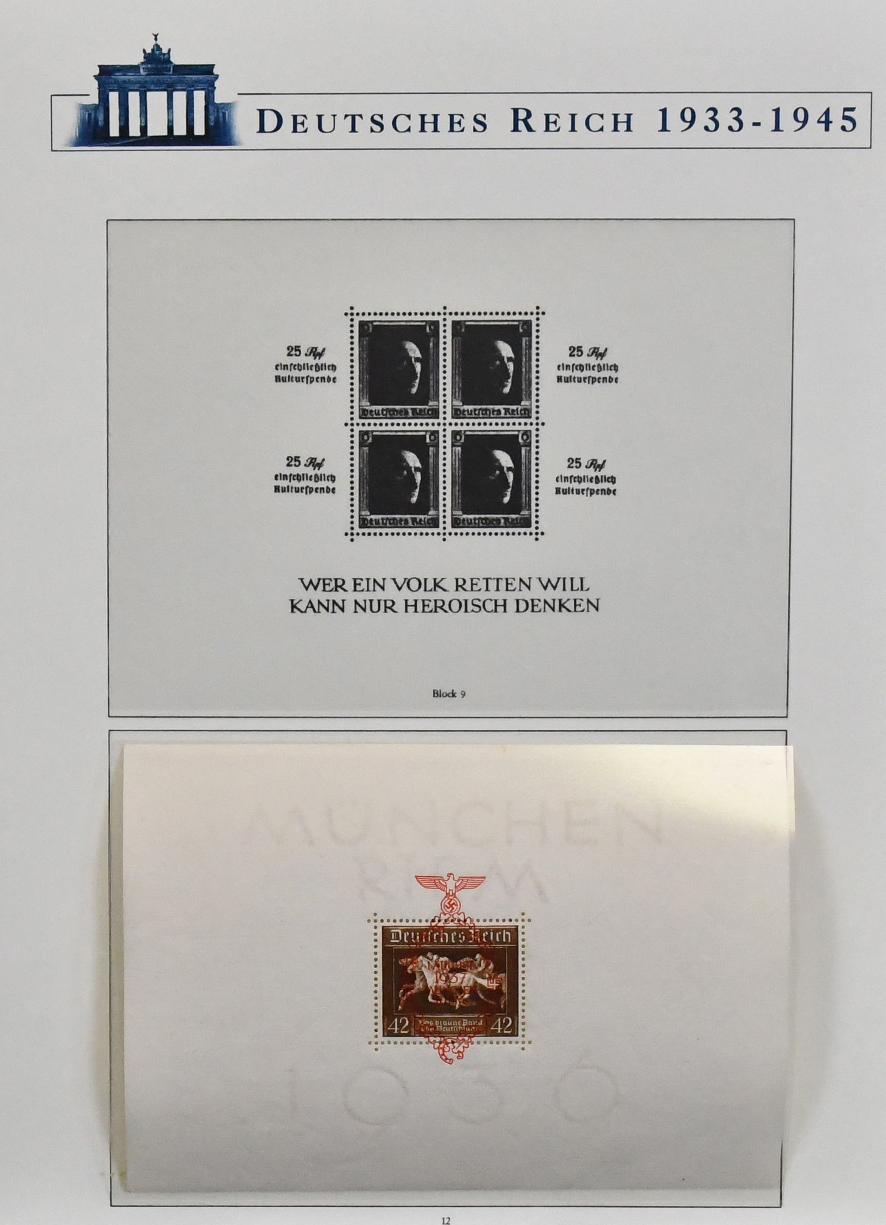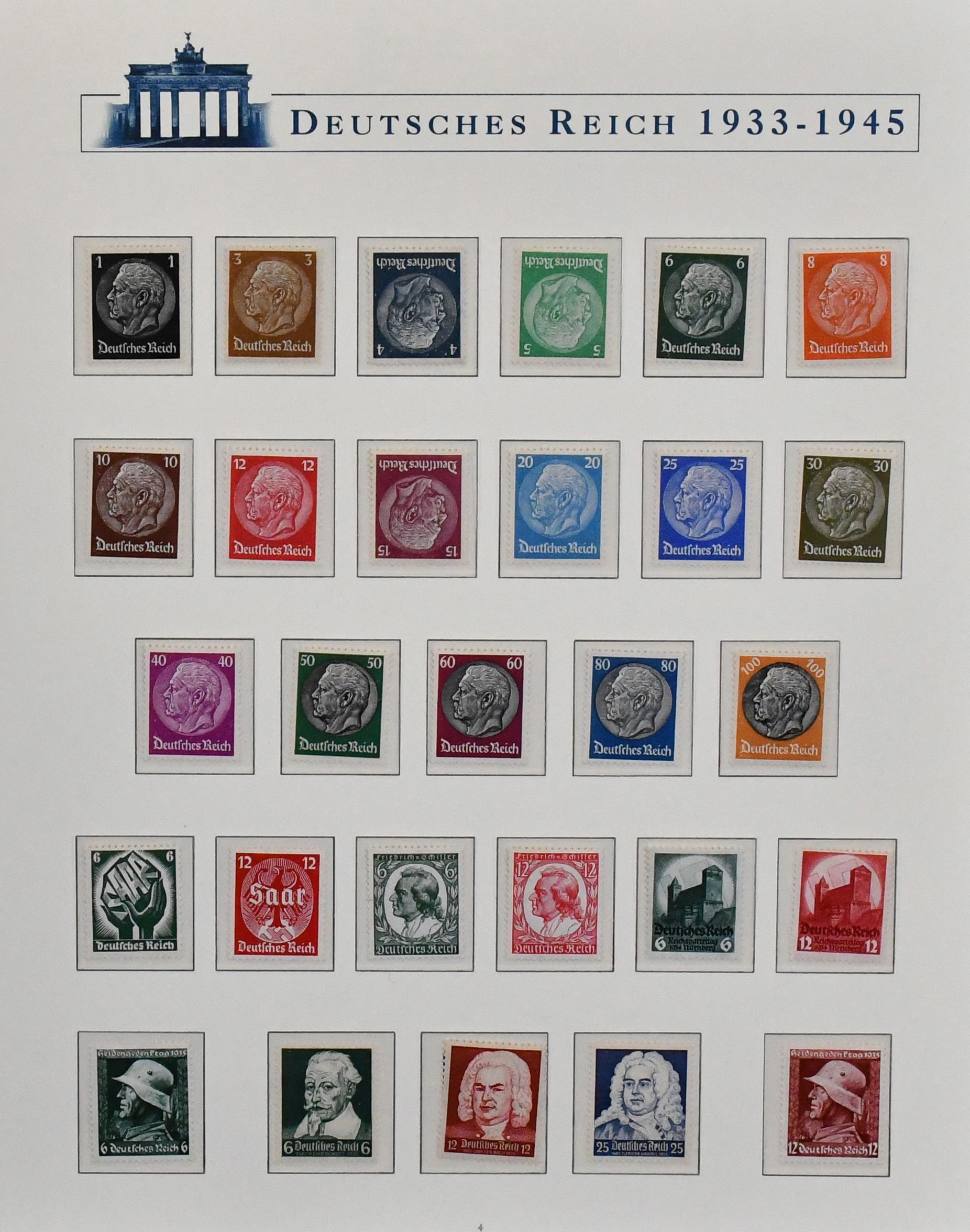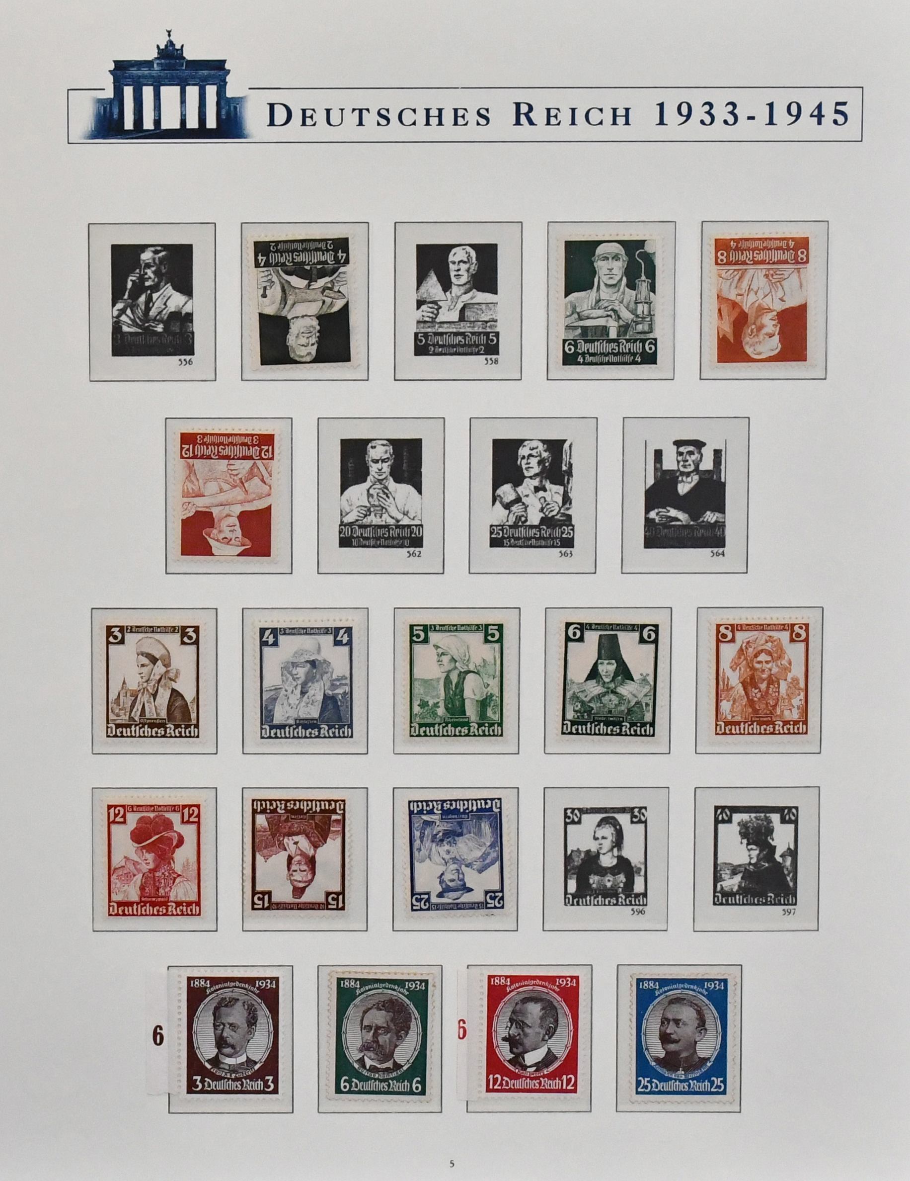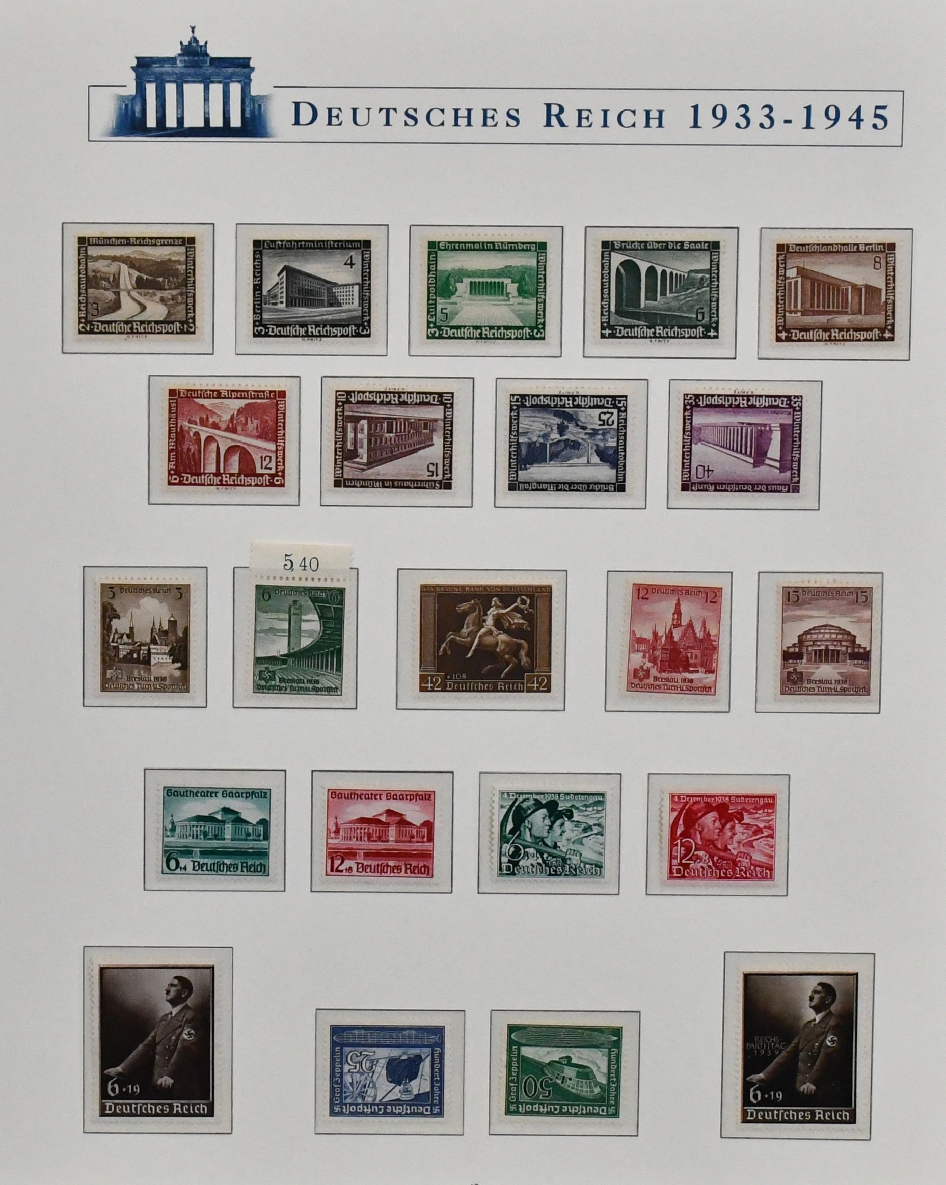 III. Reich und Besetzung II. Wk., 1933-1945, weitgehend postfrische, umfangreiche Sammlung im Album, mit etlichen besseren Werten wie u.a. Nr. 512/28, Stände ungebr., 565/68, 580/83, 634/42, 651/59, 669/70, 686/88, 699, 702/13, 730/36, 747 etc., ferner etwas Feldpost mit Tunis Nr. 5, Böhmen, GG, Elsaß-Lothringen u. Luxemburg. Mi. ca. 2000,-