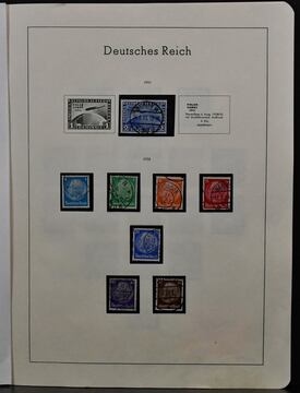 Deutsches Reich, 1923-1936, Sammlungsteil (inkl. gutem Dienstteil ab Nr. 1-14, Infla praktisch kpl.), mit III. Reich inkl. Nr. 498, Wagner bis auf billige Nr. 501 kpl., Flugpost, WHW Stände, Einzelmarken aus Bl. 3, WHW Trachten, Bl. 4-10 usw. Erhaltung etwas untersch.