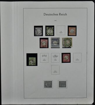 Deutsches Reich, gest. Slg. der Kaiserzeit, auf alten Vordrucken. Dabei Brustschilde (alleine 2000,- Mi.) inkl. Nr. 1/6, 8, 27, spätere Ausgaben mit u.a. Dienst Nr. 9/14 usw.