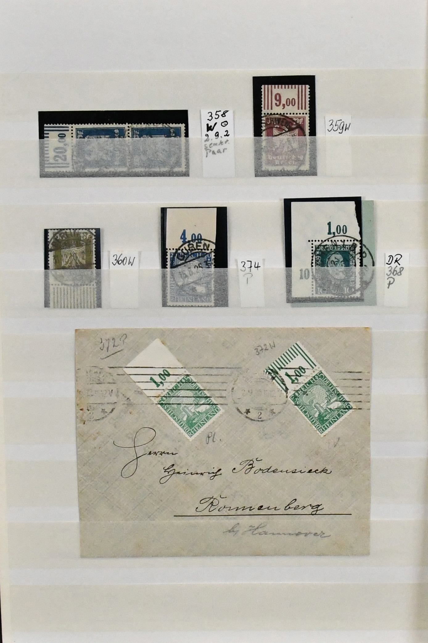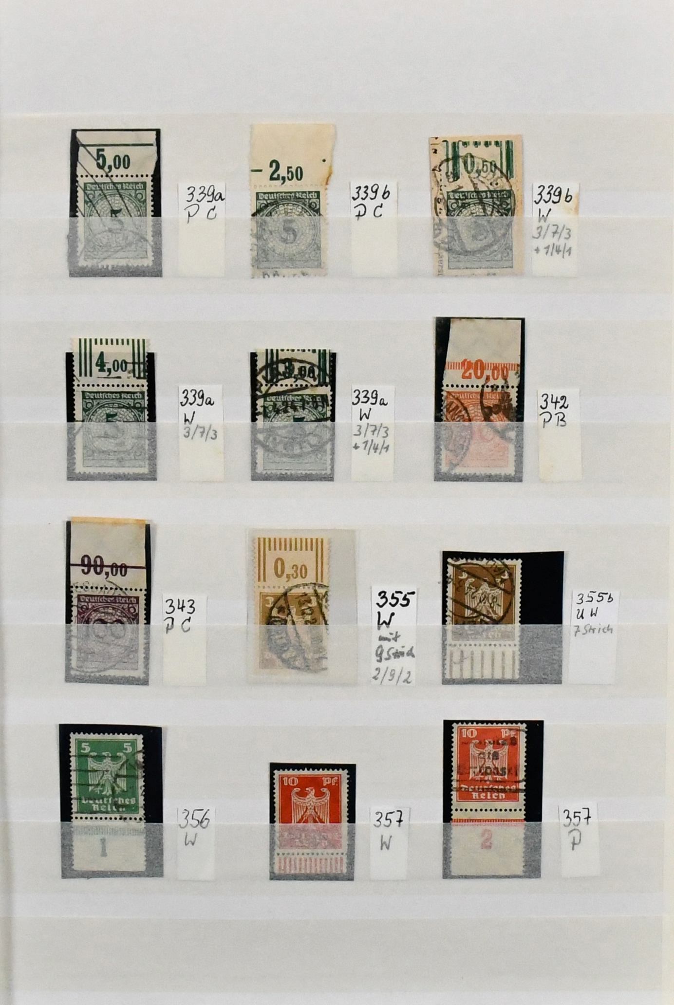 Infla/Weimar, Partie von 17 gest. Ober- bzw. Unterrandstücken, dabei u.a. Nr. 242PORB, 243PORC, 358XWOR, 359XWOR usw., zusätzlich ein Brief mit Nr. 372POR und 372WOR frankiert etc.
