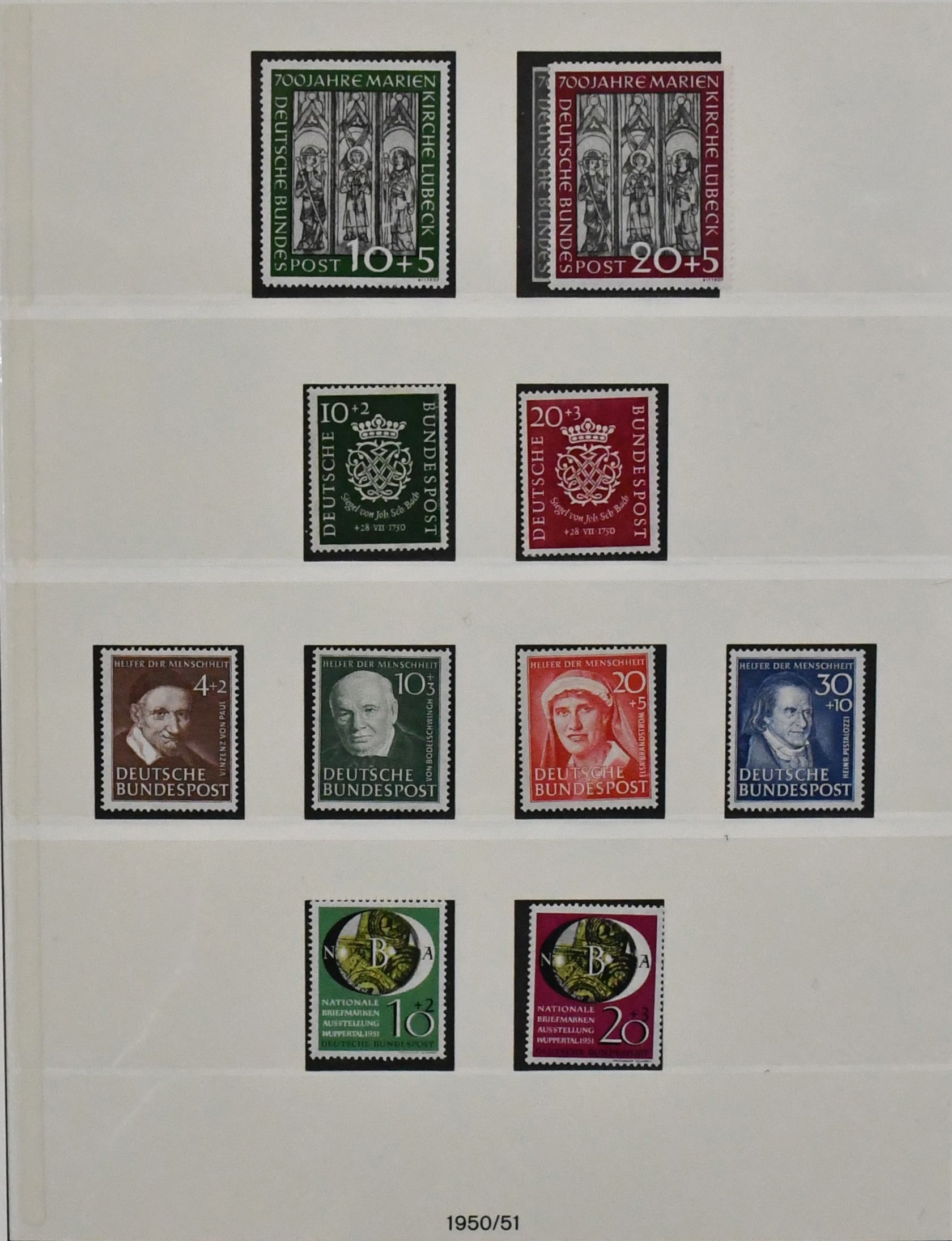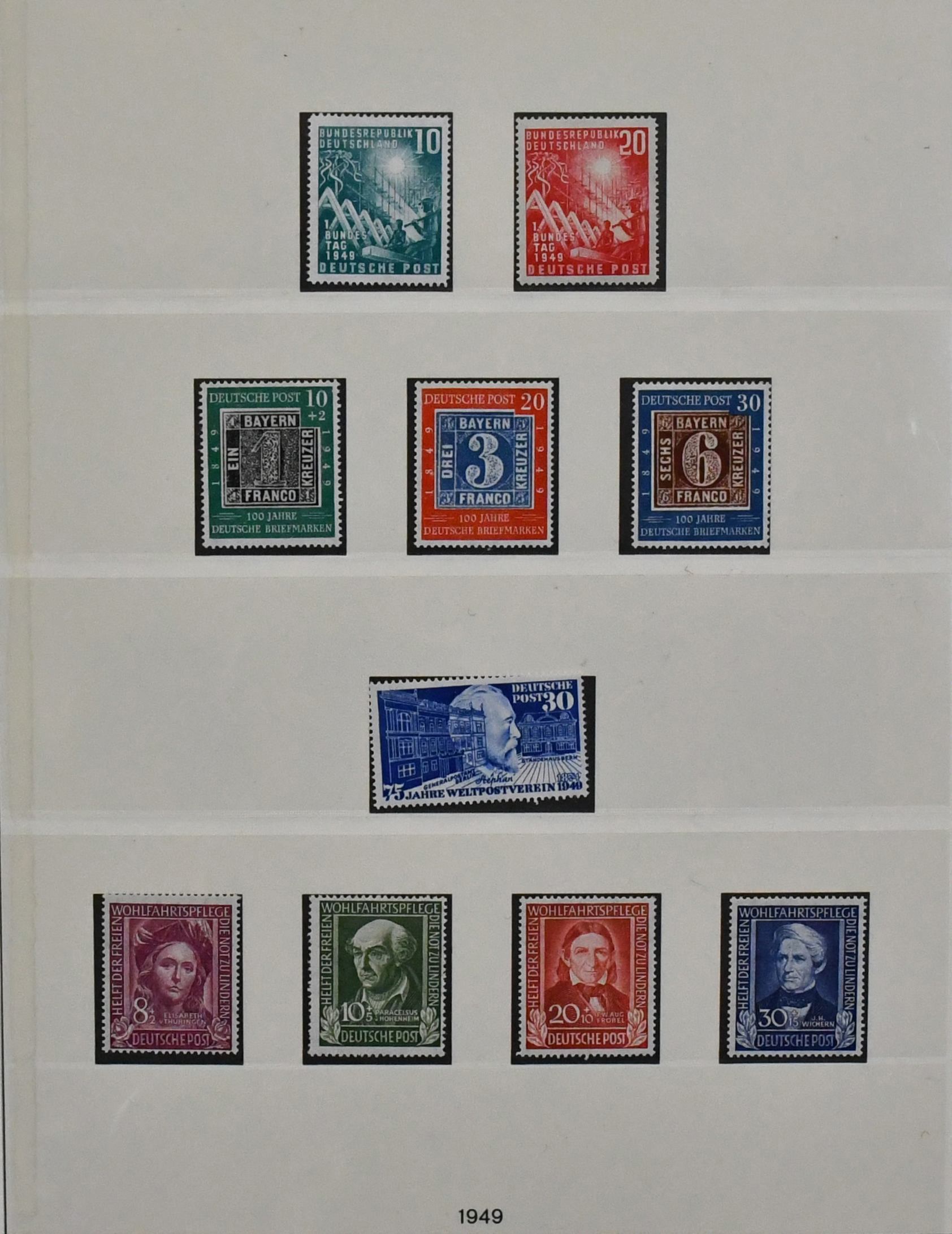 Deutschland, Sammlungsbestand in sieben Bänden mit Material in allen Erhaltungen, dabei Bund 1949-83 fast kpl. gest., mit Helfern, Marienkirche etc., weitergehende postfr. Vordrucksammlungen bis 1990, DDR ab 1949-90 über weite Strecken kpl., anfangs gest., später postfr., Lagerbestände usw.
