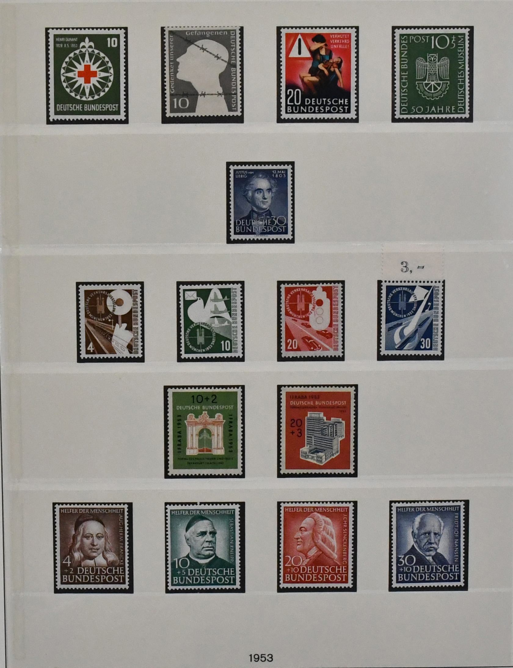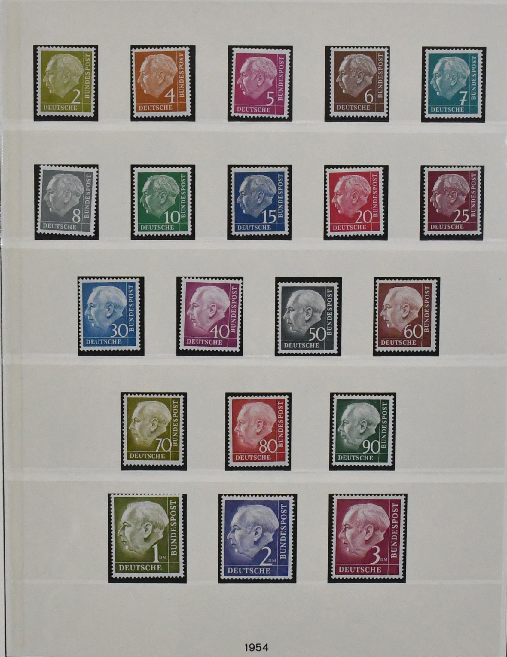 Deutschland, Nachlaßbestand im Karton mit sieben Alben, neben DDR und PLZ-Sammlung mit Belegen, eine sauber gestempelte Bund-Slg. 1949/2006, ab Nr. 111/12, bis 2006 kpl., zusätzlich postfrisch ebenso ab Nr. 111/12 (ohne Posthorn), bis 2000 kpl., inkl. allen besseren Ausgaben, Heuss Lumogen je postfr. u. gest., in drei dicken Leuchtturm-Vordruckalben, Mi. etwa 10800,-, günstiger Ansatz