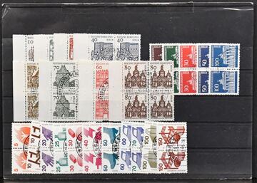 Berlin, Partie gest. Dauerserien-Einheiten, dabei Nr. 242/49 in Viererblöcken (Mi. 560,- für Paare), Nr. 286/90, sowie Unfallverhütung in waager. Paaren