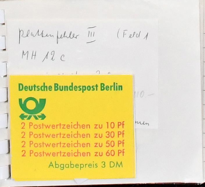 Berlin, Markenheftchen mit Plattenfehlern, 15 MH ex MH 12, 13 und 15 (mit 15I mit Zählbalken, alleine Mi. 160,-), alle mit im Michel katalogisierten Plattenfehlern