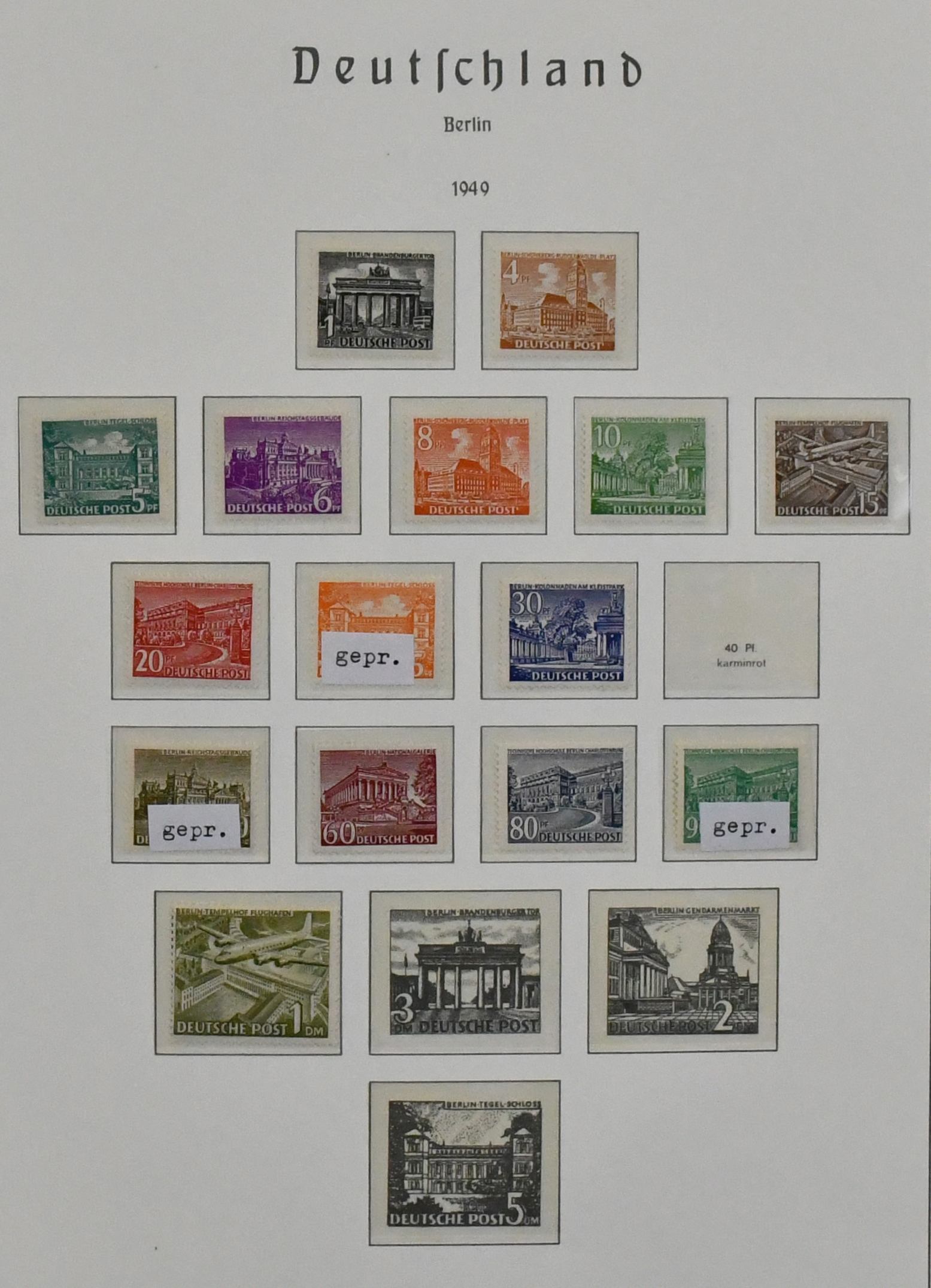 Berlin, 1948-1990, postfrische (wenig ungebr.) Slg. im Vordruckalbum, ab Nr. 1/20, mit einigen Werten Bauten I inkl. Nr. 53/57, Goethe Nr. 61/63, 71, 72/73, 75/79, 80/81, gepr., 82/86, 91/100, 101/105, 123, gepr., ab 1950 kpl. Mi. 2900,-