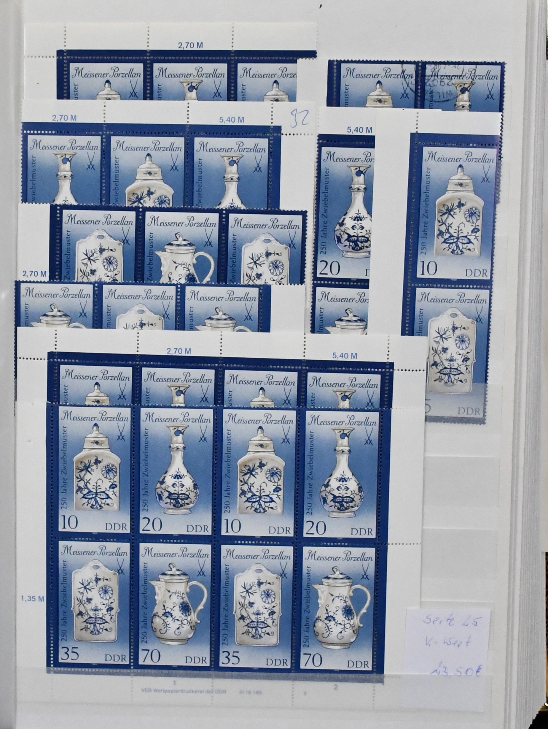 DDR, Bestand von 170 kompletten Bögen, dabei u.a. 50 postfr. Bögen 50 Pfg. Fünfjahresplan (Markenwert billigst 1500,- Mi.), Dienst A Nr. 35 ebenso per 50 (Markenwert billigst 2500,- Mi.) usw.