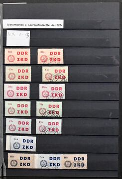 DDR, Dienst, Slg. mit Dienst C Nr. 1/15 postfr. und gest. kpl., Nr. 46 PF I zweimal und 53 PF I, je gest. (Mi. zusammen 150,-), Dienst D Nr. 1A/C und 2 gest. (Mi. 465,-), Dienst E Nr. 1 gest. usw.
