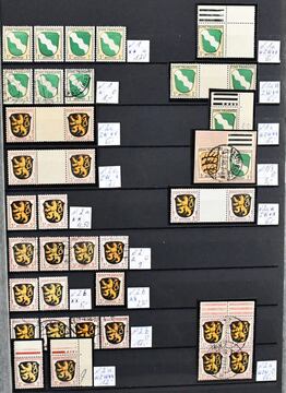 Französische Zone, postfrischer Bestand mit alleine rund 700 (!) Zwischenstegpaaren der Allgem. Ausgabe (Mi. billigst alleine schon 4200,-), sowie 1000 Werten Baden und Rheinland-Pfalz inkl. Einheiten, einigen Druckdaten und Abarten etc. Insgesamt enorm hoher KW