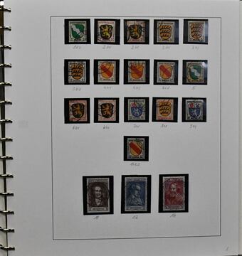 Französische Zone, 1945/49, in allen Erhaltungen geführte Sammlung mit u.a. Baden Nr. 28/37 gest., 42/45A postfr., 47/49 gest., Rheinland-Pfalz Nr. 49/52 gest., Württemberg Nr. 28/37 gest. inkl. zweimal Nr. 36/37 etc., auf Vordrucken. Mi. 1600,-