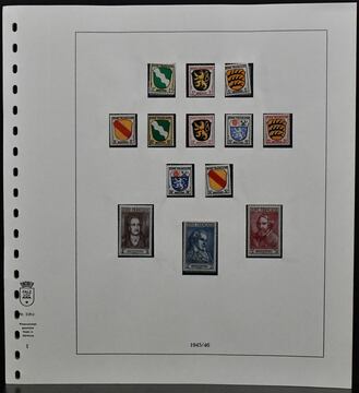 Französische Zone, kpl. postfrische Slg. auf Leuchtturm-Vordrucken, lediglich Baden Bl. 1A/B, seltene Konstanz II (Nr. 46II) und ein Freimarkensatz von Württemberg sind ungebraucht